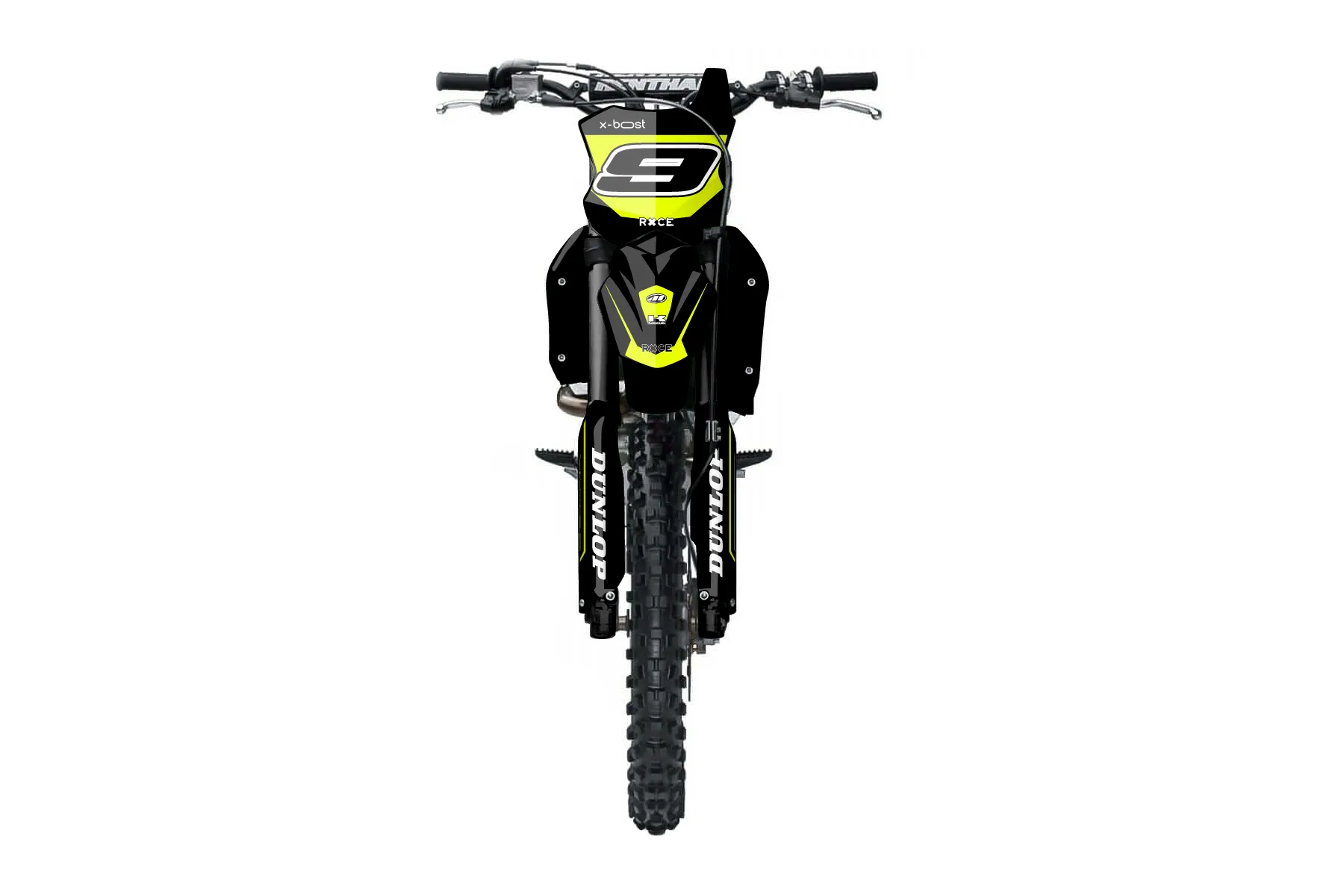 «Lucent Neon» — готовый комплект графики серии Maverick для Kawasaki MX Graphic Kit Kawasaki KX450F 2024. В комплекте: графика на бак и боковые облицовки, крылья (переднее и заднее), передний щиток, номерные таблички, защита вилки. Материал: ПВХ-винил 80 мкр с холодной ламинацией 300 мкр, общая толщина 380 мкр; покрытие глянцевое или матовое на выбор. Устойчив к UV-излучению, воде, бензину и мойке высокого давления. Клей акриловый на сольвентной основе — постоянный, для гибких пластиков. На простых поверхностях монтируется без нагрева; для сложных изгибов рекомендуем фен. Этот пресет можно заказать как есть или взять за основу в конструкторе: поменять цвета, добавить стартовый номер и свой бренд. Производство — 3–5 рабочих дней, доставка по России СДЭКом или Почтой, по СНГ — курьерскими службами.