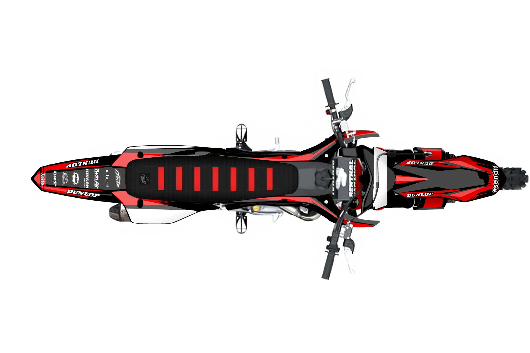 «My Design#1» — готовый комплект графики серии Untucked для Kawasaki MX Graphic Kit Kawasaki KX450F 2024. В комплекте: графика на бак и боковые облицовки, крылья (переднее и заднее), передний щиток, номерные таблички, защита вилки. Материал: ПВХ-винил 80 мкр с холодной ламинацией 300 мкр, общая толщина 380 мкр; покрытие глянцевое или матовое на выбор. Устойчив к UV-излучению, воде, бензину и мойке высокого давления. Клей акриловый на сольвентной основе — постоянный, для гибких пластиков. На простых поверхностях монтируется без нагрева; для сложных изгибов рекомендуем фен. Этот пресет можно заказать как есть или взять за основу в конструкторе: поменять цвета, добавить стартовый номер и свой бренд. Производство — 3–5 рабочих дней, доставка по России СДЭКом или Почтой, по СНГ — курьерскими службами.