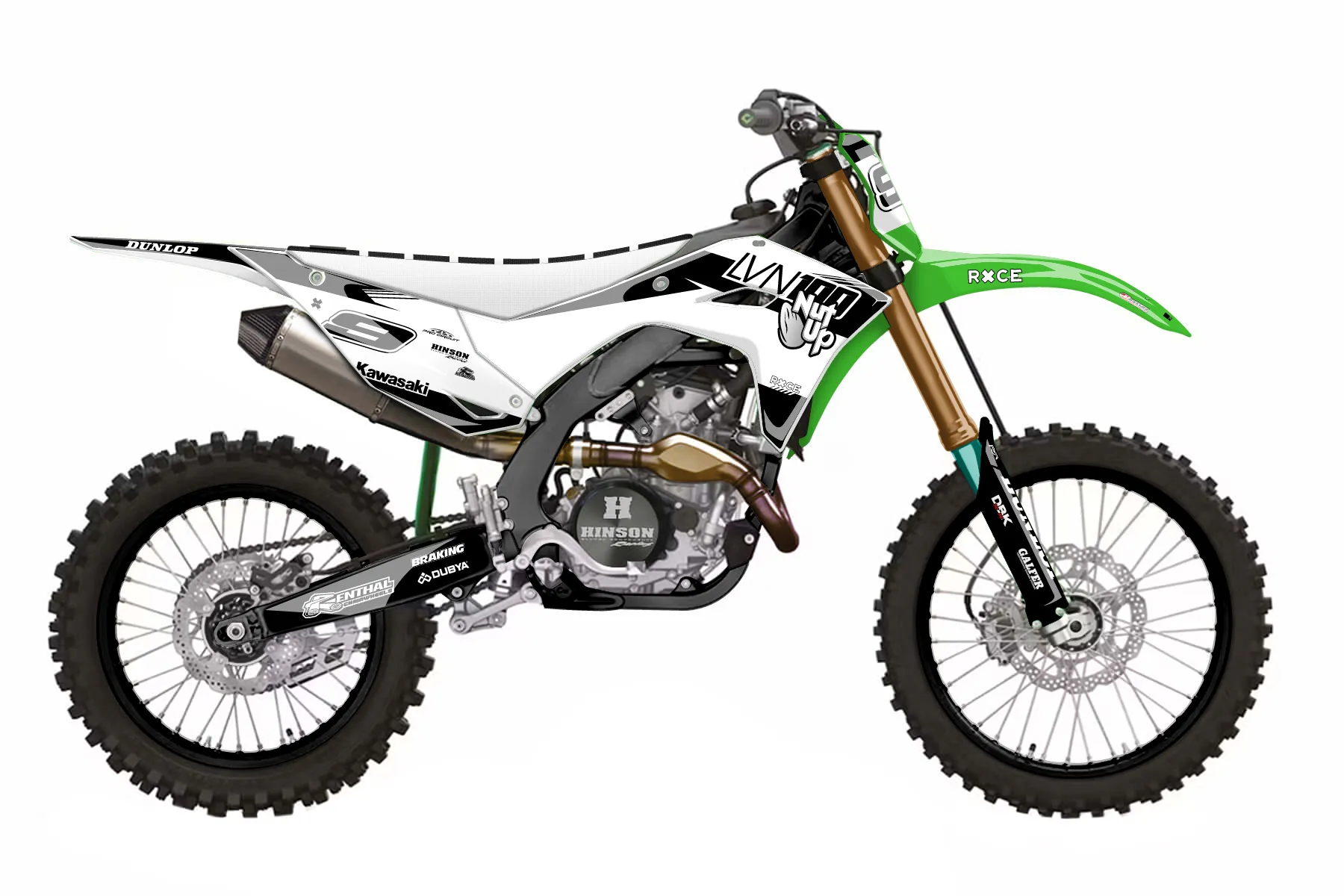«Myth» — готовый комплект графики серии Untucked для Kawasaki MX Graphic Kit Kawasaki KX450F 2024. В комплекте: графика на бак и боковые облицовки, крылья (переднее и заднее), передний щиток, номерные таблички, защита вилки. Материал: ПВХ-винил 80 мкр с холодной ламинацией 300 мкр, общая толщина 380 мкр; покрытие глянцевое или матовое на выбор. Устойчив к UV-излучению, воде, бензину и мойке высокого давления. Клей акриловый на сольвентной основе — постоянный, для гибких пластиков. На простых поверхностях монтируется без нагрева; для сложных изгибов рекомендуем фен. Этот пресет можно заказать как есть или взять за основу в конструкторе: поменять цвета, добавить стартовый номер и свой бренд. Производство — 3–5 рабочих дней, доставка по России СДЭКом или Почтой, по СНГ — курьерскими службами.