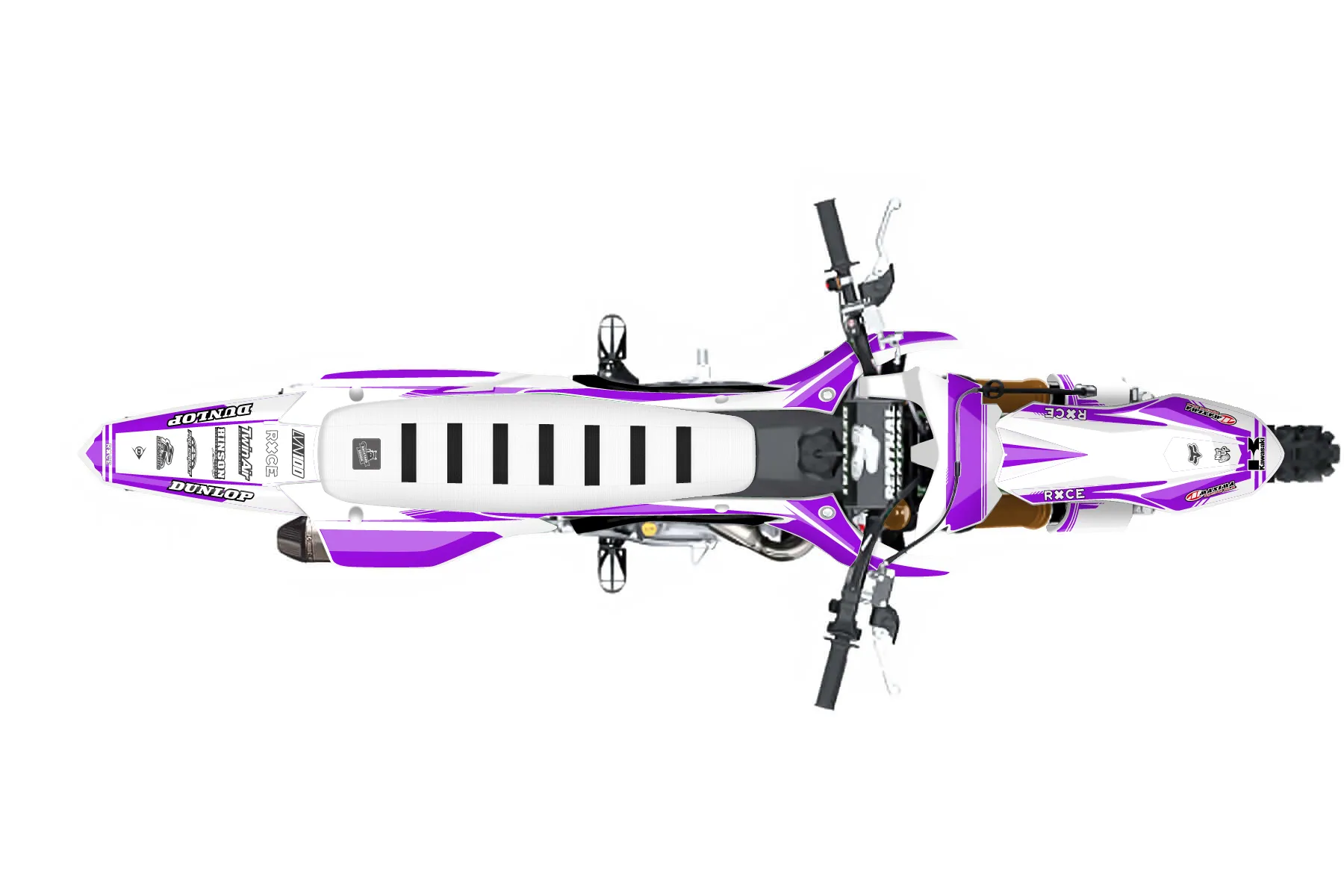 «Purpscurp» — готовый комплект графики серии Untucked для Kawasaki MX Graphic Kit Kawasaki KX450F 2024. В комплекте: графика на бак и боковые облицовки, крылья (переднее и заднее), передний щиток, номерные таблички, защита вилки. Материал: ПВХ-винил 80 мкр с холодной ламинацией 300 мкр, общая толщина 380 мкр; покрытие глянцевое или матовое на выбор. Устойчив к UV-излучению, воде, бензину и мойке высокого давления. Клей акриловый на сольвентной основе — постоянный, для гибких пластиков. На простых поверхностях монтируется без нагрева; для сложных изгибов рекомендуем фен. Этот пресет можно заказать как есть или взять за основу в конструкторе: поменять цвета, добавить стартовый номер и свой бренд. Производство — 3–5 рабочих дней, доставка по России СДЭКом или Почтой, по СНГ — курьерскими службами.