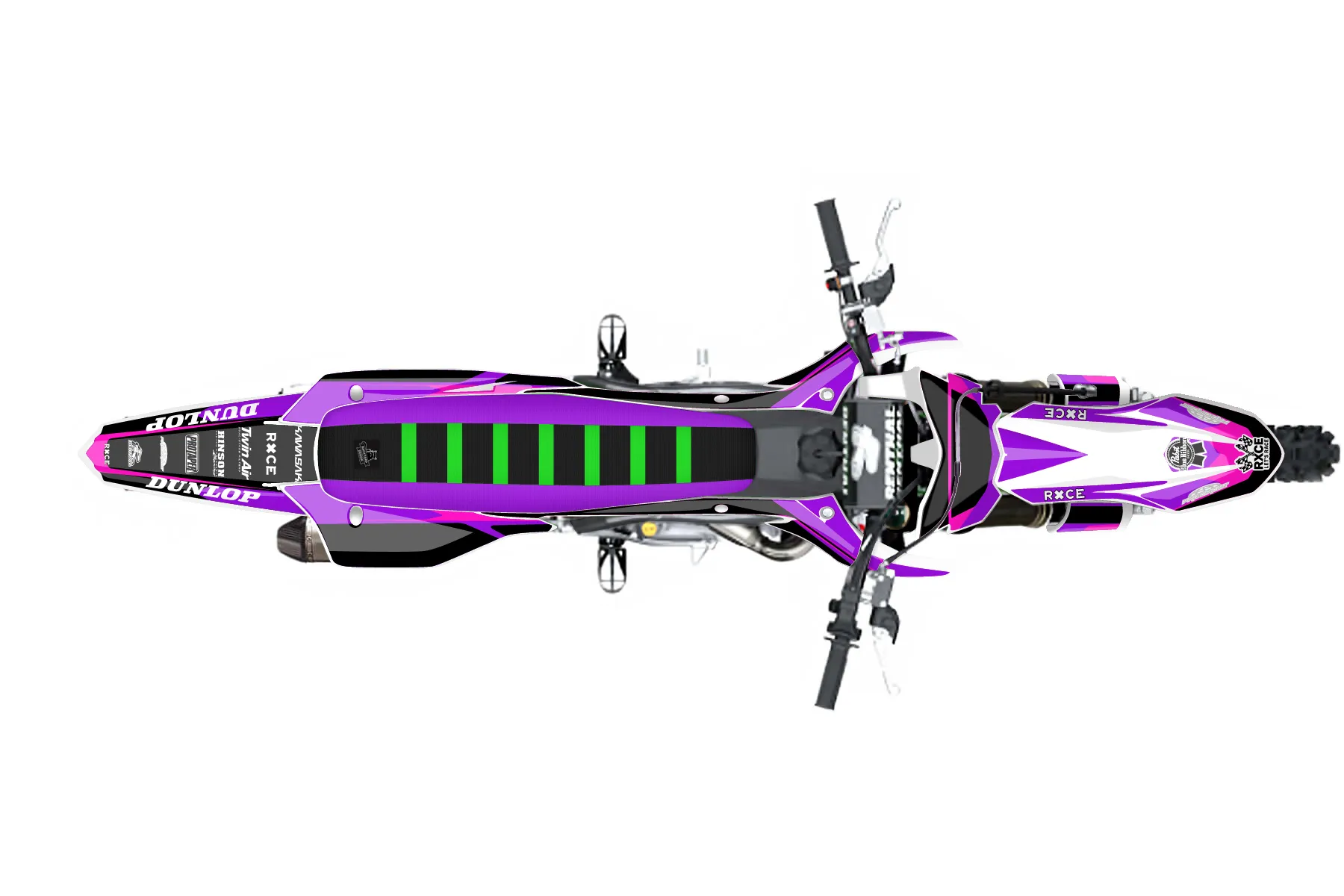 «Kx250» — готовый комплект графики серии Flow для Kawasaki MX Graphic Kit Kawasaki KXF 250 X 2021. В комплекте: графика на бак и боковые облицовки, крылья (переднее и заднее), передний щиток, номерные таблички, защита вилки. Материал: ПВХ-винил 80 мкр с холодной ламинацией 300 мкр, общая толщина 380 мкр; покрытие глянцевое или матовое на выбор. Устойчив к UV-излучению, воде, бензину и мойке высокого давления. Клей акриловый на сольвентной основе — постоянный, для гибких пластиков. На простых поверхностях монтируется без нагрева; для сложных изгибов рекомендуем фен. Этот пресет можно заказать как есть или взять за основу в конструкторе: поменять цвета, добавить стартовый номер и свой бренд. Производство — 3–5 рабочих дней, доставка по России СДЭКом или Почтой, по СНГ — курьерскими службами.