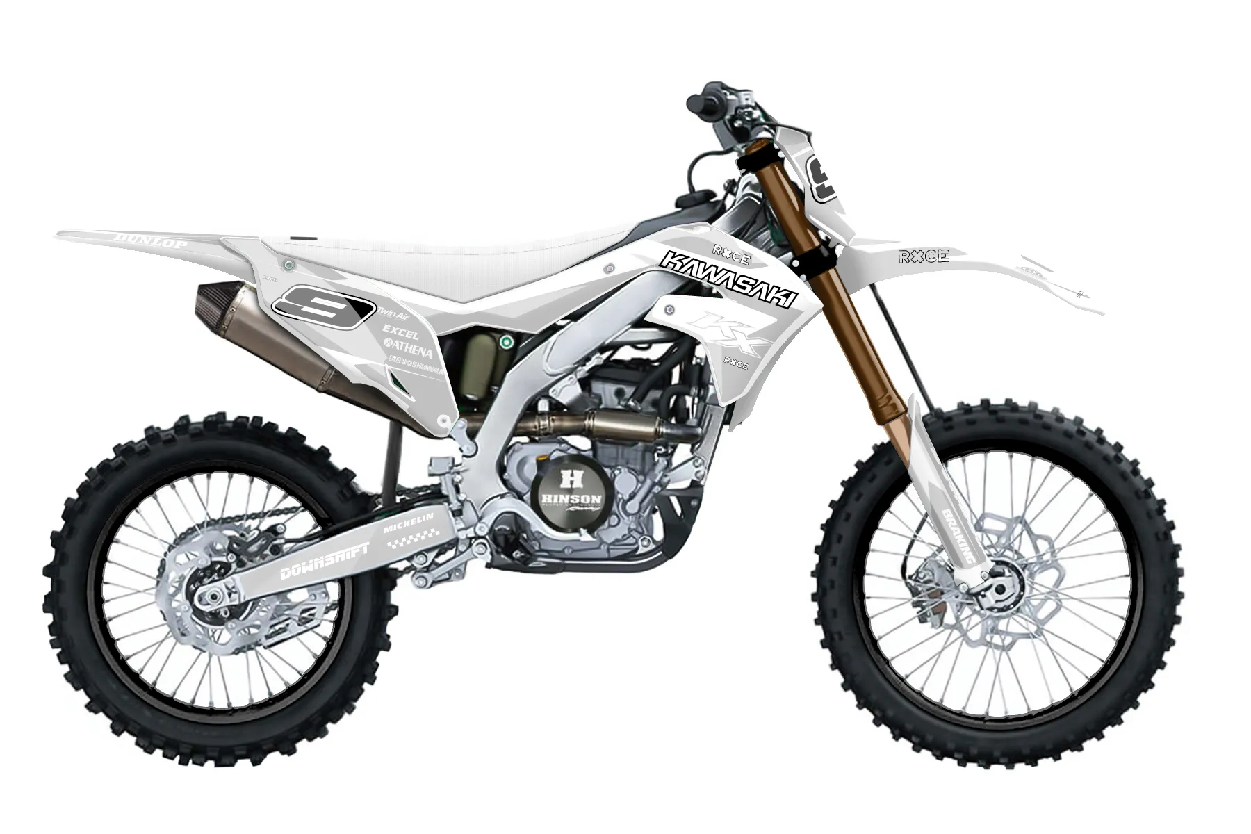«White kawi» — готовый комплект графики серии Flow для Kawasaki MX Graphic Kit Kawasaki KXF 250 X 2021. В комплекте: графика на бак и боковые облицовки, крылья (переднее и заднее), передний щиток, номерные таблички, защита вилки. Материал: ПВХ-винил 80 мкр с холодной ламинацией 300 мкр, общая толщина 380 мкр; покрытие глянцевое или матовое на выбор. Устойчив к UV-излучению, воде, бензину и мойке высокого давления. Клей акриловый на сольвентной основе — постоянный, для гибких пластиков. На простых поверхностях монтируется без нагрева; для сложных изгибов рекомендуем фен. Этот пресет можно заказать как есть или взять за основу в конструкторе: поменять цвета, добавить стартовый номер и свой бренд. Производство — 3–5 рабочих дней, доставка по России СДЭКом или Почтой, по СНГ — курьерскими службами.