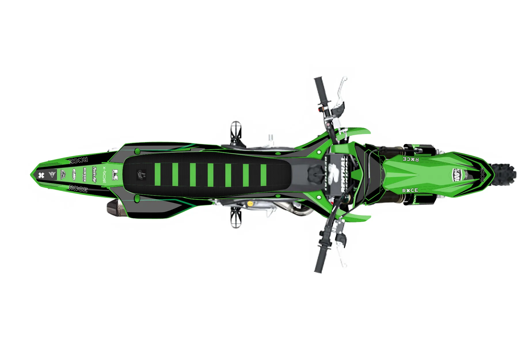 «CustomDesignborel» — готовый комплект графики серии Staple для Kawasaki MX Graphic Kit Kawasaki KXF 250 X 2021. В комплекте: графика на бак и боковые облицовки, крылья (переднее и заднее), передний щиток, номерные таблички, защита вилки. Материал: ПВХ-винил 80 мкр с холодной ламинацией 300 мкр, общая толщина 380 мкр; покрытие глянцевое или матовое на выбор. Устойчив к UV-излучению, воде, бензину и мойке высокого давления. Клей акриловый на сольвентной основе — постоянный, для гибких пластиков. На простых поверхностях монтируется без нагрева; для сложных изгибов рекомендуем фен. Этот пресет можно заказать как есть или взять за основу в конструкторе: поменять цвета, добавить стартовый номер и свой бренд. Производство — 3–5 рабочих дней, доставка по России СДЭКом или Почтой, по СНГ — курьерскими службами.