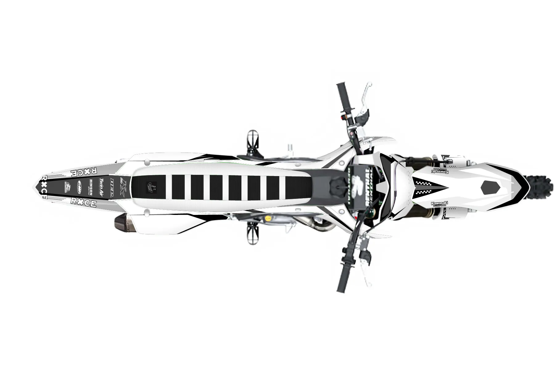 «KX250X Finale 001» — готовый комплект графики серии Staple для Kawasaki MX Graphic Kit Kawasaki KXF 250 X 2021. В комплекте: графика на бак и боковые облицовки, крылья (переднее и заднее), передний щиток, номерные таблички, защита вилки. Материал: ПВХ-винил 80 мкр с холодной ламинацией 300 мкр, общая толщина 380 мкр; покрытие глянцевое или матовое на выбор. Устойчив к UV-излучению, воде, бензину и мойке высокого давления. Клей акриловый на сольвентной основе — постоянный, для гибких пластиков. На простых поверхностях монтируется без нагрева; для сложных изгибов рекомендуем фен. Этот пресет можно заказать как есть или взять за основу в конструкторе: поменять цвета, добавить стартовый номер и свой бренд. Производство — 3–5 рабочих дней, доставка по России СДЭКом или Почтой, по СНГ — курьерскими службами.
