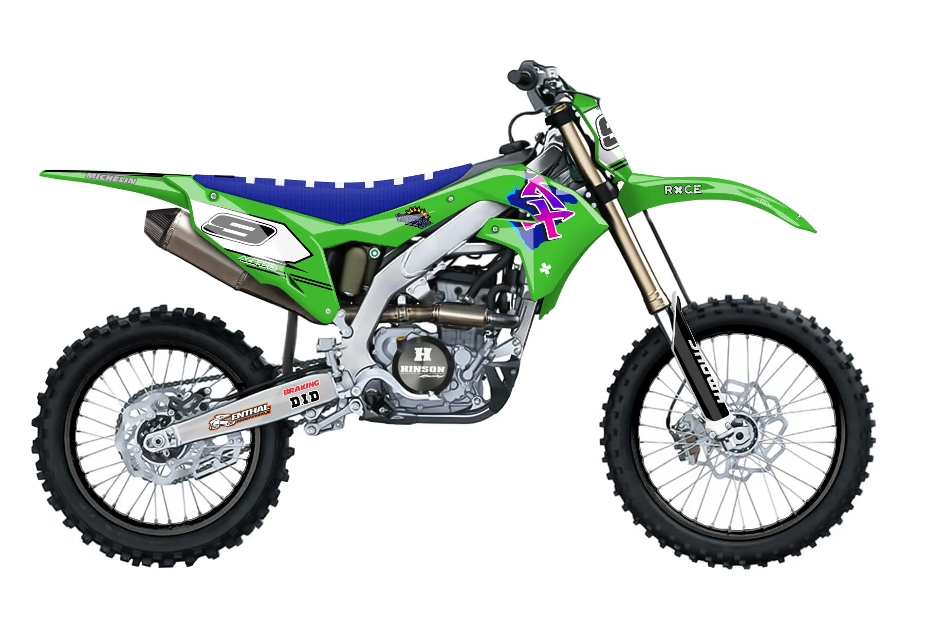 «123» — готовый комплект графики серии Untucked для Kawasaki MX Graphic Kit Kawasaki KXF 250 X 2021. В комплекте: графика на бак и боковые облицовки, крылья (переднее и заднее), передний щиток, номерные таблички, защита вилки. Материал: ПВХ-винил 80 мкр с холодной ламинацией 300 мкр, общая толщина 380 мкр; покрытие глянцевое или матовое на выбор. Устойчив к UV-излучению, воде, бензину и мойке высокого давления. Клей акриловый на сольвентной основе — постоянный, для гибких пластиков. На простых поверхностях монтируется без нагрева; для сложных изгибов рекомендуем фен. Этот пресет можно заказать как есть или взять за основу в конструкторе: поменять цвета, добавить стартовый номер и свой бренд. Производство — 3–5 рабочих дней, доставка по России СДЭКом или Почтой, по СНГ — курьерскими службами.