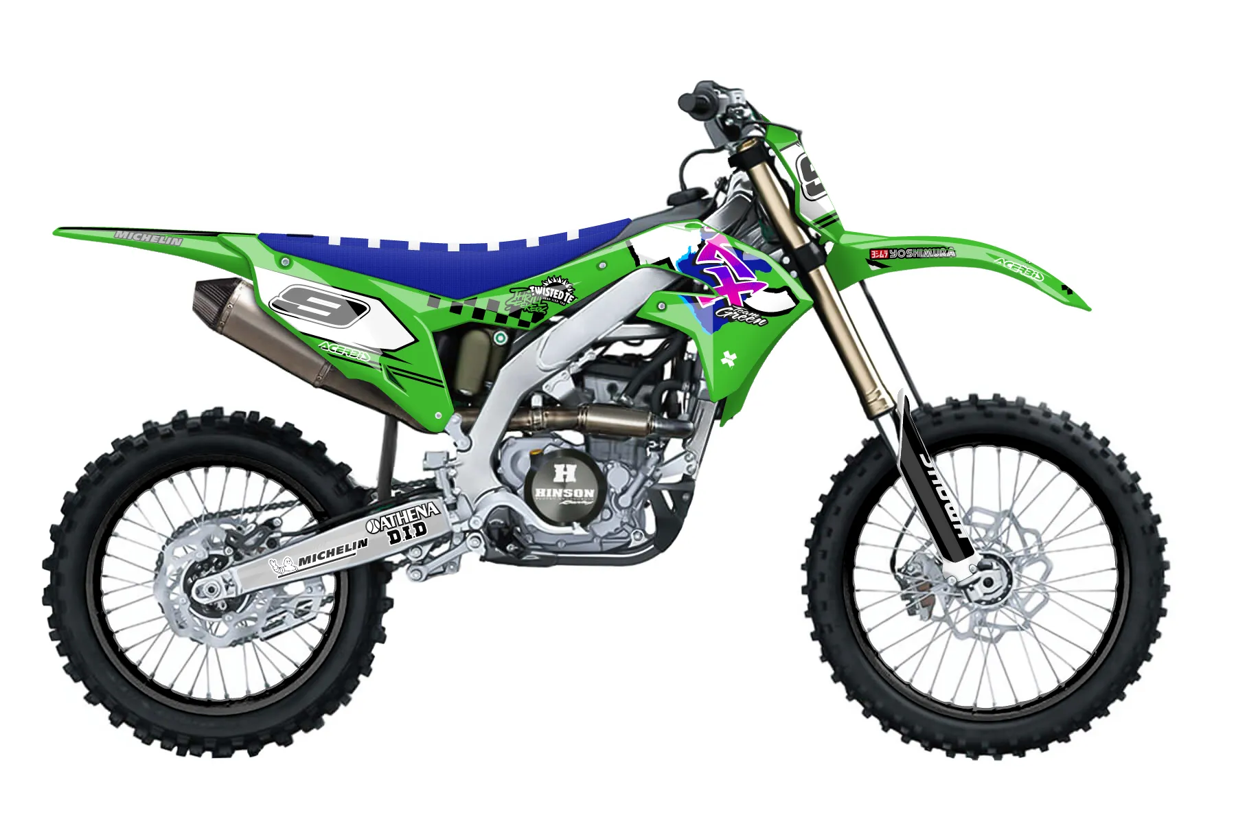 «done 3» — готовый комплект графики серии Untucked для Kawasaki MX Graphic Kit Kawasaki KXF 250 X 2021. В комплекте: графика на бак и боковые облицовки, крылья (переднее и заднее), передний щиток, номерные таблички, защита вилки. Материал: ПВХ-винил 80 мкр с холодной ламинацией 300 мкр, общая толщина 380 мкр; покрытие глянцевое или матовое на выбор. Устойчив к UV-излучению, воде, бензину и мойке высокого давления. Клей акриловый на сольвентной основе — постоянный, для гибких пластиков. На простых поверхностях монтируется без нагрева; для сложных изгибов рекомендуем фен. Этот пресет можно заказать как есть или взять за основу в конструкторе: поменять цвета, добавить стартовый номер и свой бренд. Производство — 3–5 рабочих дней, доставка по России СДЭКом или Почтой, по СНГ — курьерскими службами.