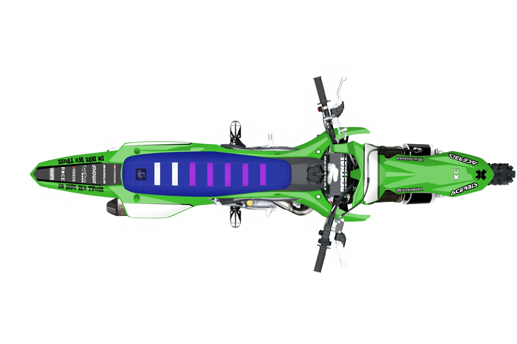 «done 523X» — готовый комплект графики серии Untucked для Kawasaki MX Graphic Kit Kawasaki KXF 250 X 2021. В комплекте: графика на бак и боковые облицовки, крылья (переднее и заднее), передний щиток, номерные таблички, защита вилки. Материал: ПВХ-винил 80 мкр с холодной ламинацией 300 мкр, общая толщина 380 мкр; покрытие глянцевое или матовое на выбор. Устойчив к UV-излучению, воде, бензину и мойке высокого давления. Клей акриловый на сольвентной основе — постоянный, для гибких пластиков. На простых поверхностях монтируется без нагрева; для сложных изгибов рекомендуем фен. Этот пресет можно заказать как есть или взять за основу в конструкторе: поменять цвета, добавить стартовый номер и свой бренд. Производство — 3–5 рабочих дней, доставка по России СДЭКом или Почтой, по СНГ — курьерскими службами.