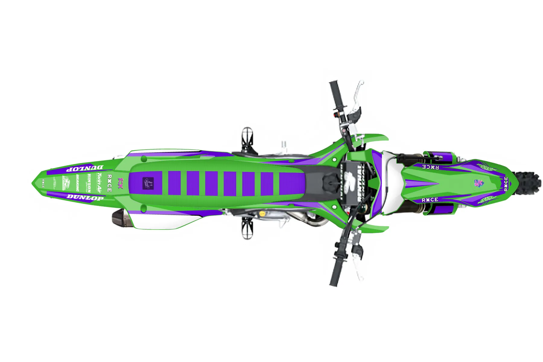 «vintage kx» — готовый комплект графики серии Untucked для Kawasaki MX Graphic Kit Kawasaki KXF 250 X 2021. В комплекте: графика на бак и боковые облицовки, крылья (переднее и заднее), передний щиток, номерные таблички, защита вилки. Материал: ПВХ-винил 80 мкр с холодной ламинацией 300 мкр, общая толщина 380 мкр; покрытие глянцевое или матовое на выбор. Устойчив к UV-излучению, воде, бензину и мойке высокого давления. Клей акриловый на сольвентной основе — постоянный, для гибких пластиков. На простых поверхностях монтируется без нагрева; для сложных изгибов рекомендуем фен. Этот пресет можно заказать как есть или взять за основу в конструкторе: поменять цвета, добавить стартовый номер и свой бренд. Производство — 3–5 рабочих дней, доставка по России СДЭКом или Почтой, по СНГ — курьерскими службами.