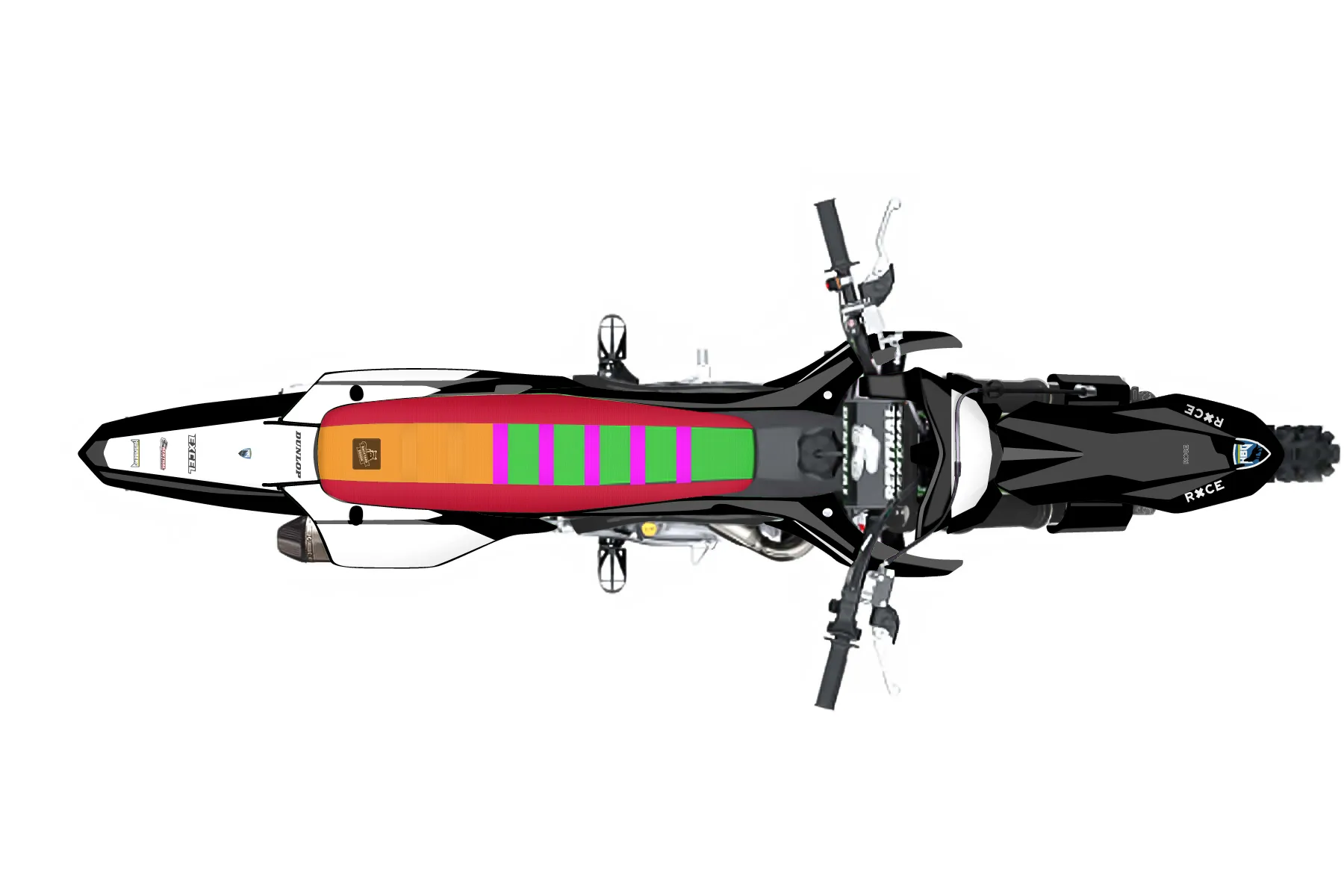 «CustomDesign» — готовый комплект графики серии Flow для Kawasaki MX Graphic Kit Kawasaki KXF 450 X 2021. В комплекте: графика на бак и боковые облицовки, крылья (переднее и заднее), передний щиток, номерные таблички, защита вилки. Материал: ПВХ-винил 80 мкр с холодной ламинацией 300 мкр, общая толщина 380 мкр; покрытие глянцевое или матовое на выбор. Устойчив к UV-излучению, воде, бензину и мойке высокого давления. Клей акриловый на сольвентной основе — постоянный, для гибких пластиков. На простых поверхностях монтируется без нагрева; для сложных изгибов рекомендуем фен. Этот пресет можно заказать как есть или взять за основу в конструкторе: поменять цвета, добавить стартовый номер и свой бренд. Производство — 3–5 рабочих дней, доставка по России СДЭКом или Почтой, по СНГ — курьерскими службами.
