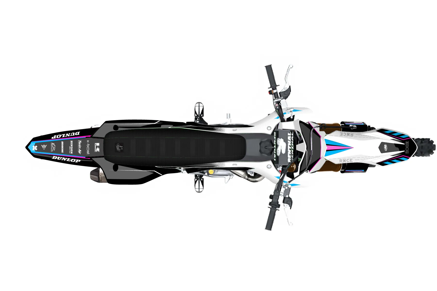«Optical» — готовый комплект графики серии Maverick для Kawasaki MX Graphic Kit Kawasaki KXF 450 X 2021. В комплекте: графика на бак и боковые облицовки, крылья (переднее и заднее), передний щиток, номерные таблички, защита вилки. Материал: ПВХ-винил 80 мкр с холодной ламинацией 300 мкр, общая толщина 380 мкр; покрытие глянцевое или матовое на выбор. Устойчив к UV-излучению, воде, бензину и мойке высокого давления. Клей акриловый на сольвентной основе — постоянный, для гибких пластиков. На простых поверхностях монтируется без нагрева; для сложных изгибов рекомендуем фен. Этот пресет можно заказать как есть или взять за основу в конструкторе: поменять цвета, добавить стартовый номер и свой бренд. Производство — 3–5 рабочих дней, доставка по России СДЭКом или Почтой, по СНГ — курьерскими службами.