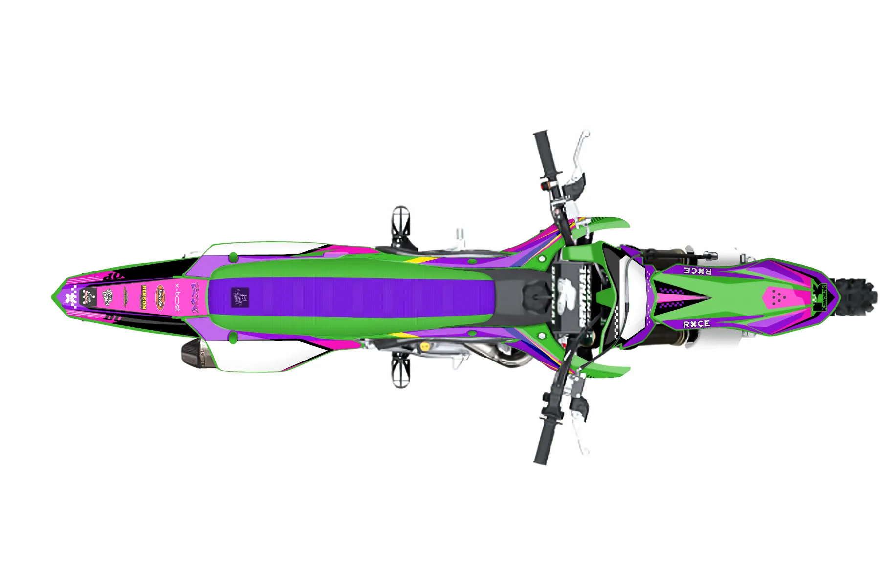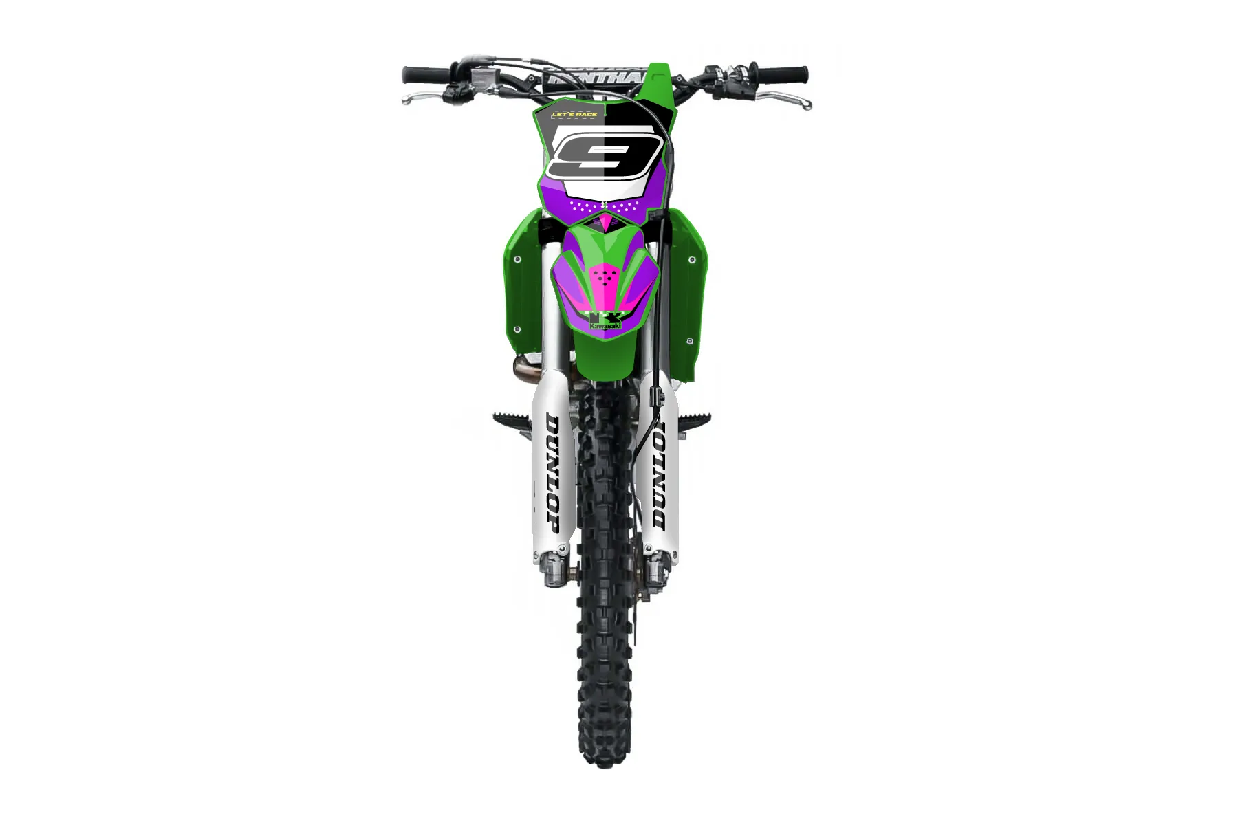 «hot tropic» — готовый комплект графики серии Staple для Kawasaki MX Graphic Kit Kawasaki KXF 450 X 2021. В комплекте: графика на бак и боковые облицовки, крылья (переднее и заднее), передний щиток, номерные таблички, защита вилки. Материал: ПВХ-винил 80 мкр с холодной ламинацией 300 мкр, общая толщина 380 мкр; покрытие глянцевое или матовое на выбор. Устойчив к UV-излучению, воде, бензину и мойке высокого давления. Клей акриловый на сольвентной основе — постоянный, для гибких пластиков. На простых поверхностях монтируется без нагрева; для сложных изгибов рекомендуем фен. Этот пресет можно заказать как есть или взять за основу в конструкторе: поменять цвета, добавить стартовый номер и свой бренд. Производство — 3–5 рабочих дней, доставка по России СДЭКом или Почтой, по СНГ — курьерскими службами.