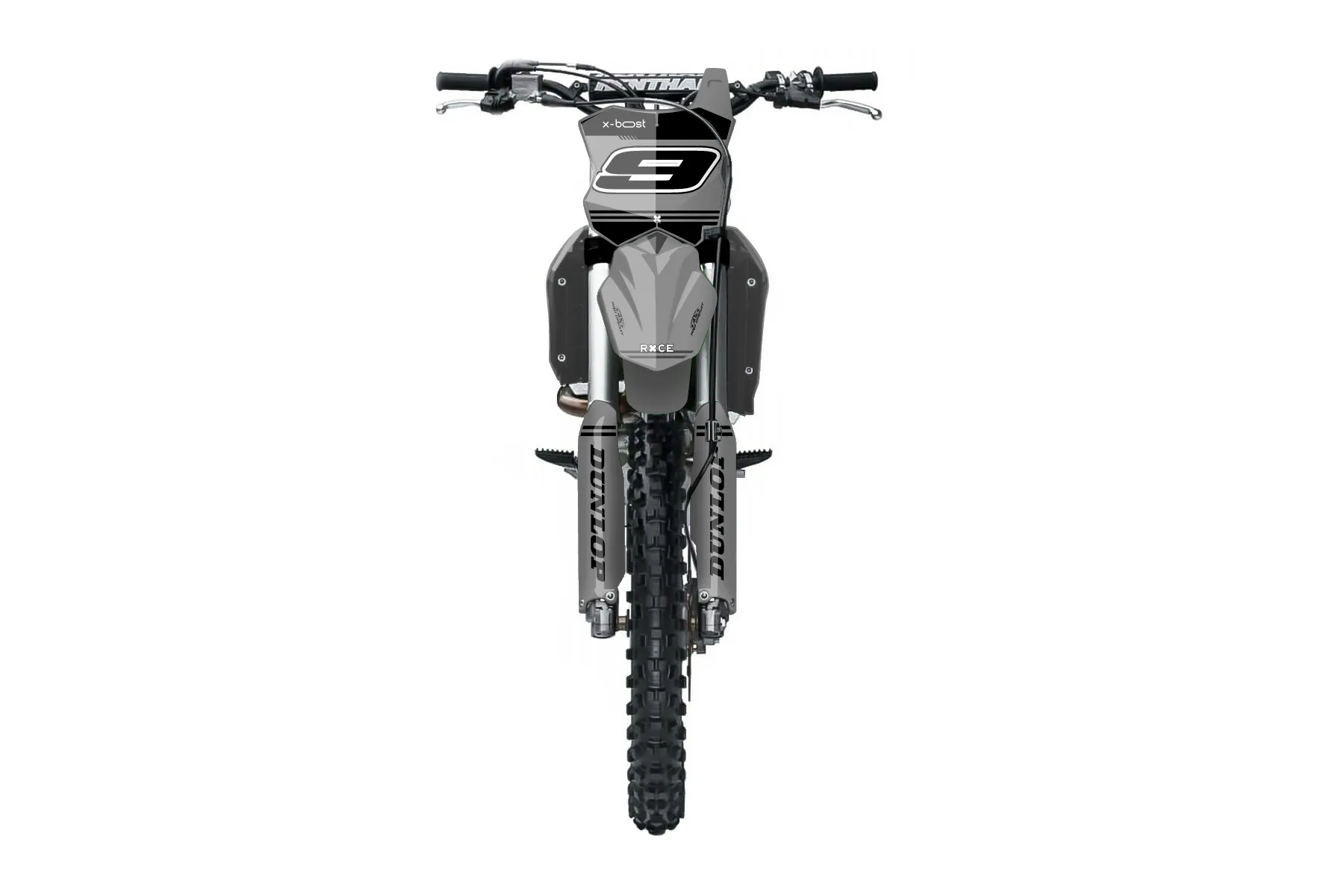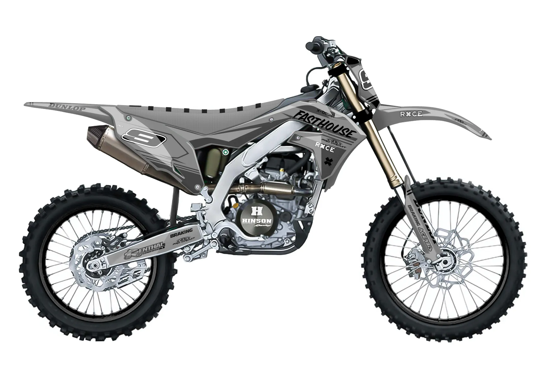 «450» — готовый комплект графики серии Untucked для Kawasaki MX Graphic Kit Kawasaki KXF 450 X 2021. В комплекте: графика на бак и боковые облицовки, крылья (переднее и заднее), передний щиток, номерные таблички, защита вилки. Материал: ПВХ-винил 80 мкр с холодной ламинацией 300 мкр, общая толщина 380 мкр; покрытие глянцевое или матовое на выбор. Устойчив к UV-излучению, воде, бензину и мойке высокого давления. Клей акриловый на сольвентной основе — постоянный, для гибких пластиков. На простых поверхностях монтируется без нагрева; для сложных изгибов рекомендуем фен. Этот пресет можно заказать как есть или взять за основу в конструкторе: поменять цвета, добавить стартовый номер и свой бренд. Производство — 3–5 рабочих дней, доставка по России СДЭКом или Почтой, по СНГ — курьерскими службами.