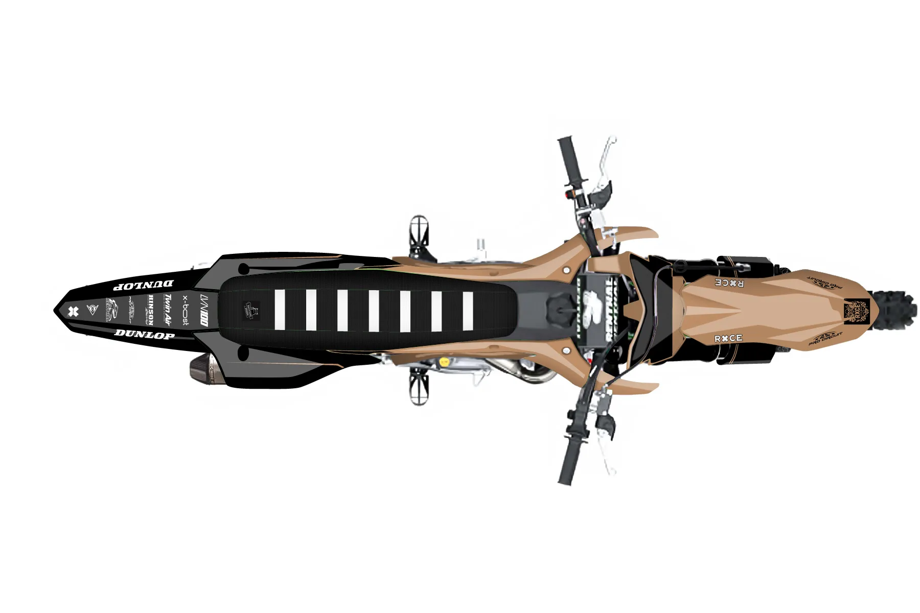 «CustomDesign1» — готовый комплект графики серии Untucked для Kawasaki MX Graphic Kit Kawasaki KXF 450 X 2021. В комплекте: графика на бак и боковые облицовки, крылья (переднее и заднее), передний щиток, номерные таблички, защита вилки. Материал: ПВХ-винил 80 мкр с холодной ламинацией 300 мкр, общая толщина 380 мкр; покрытие глянцевое или матовое на выбор. Устойчив к UV-излучению, воде, бензину и мойке высокого давления. Клей акриловый на сольвентной основе — постоянный, для гибких пластиков. На простых поверхностях монтируется без нагрева; для сложных изгибов рекомендуем фен. Этот пресет можно заказать как есть или взять за основу в конструкторе: поменять цвета, добавить стартовый номер и свой бренд. Производство — 3–5 рабочих дней, доставка по России СДЭКом или Почтой, по СНГ — курьерскими службами.