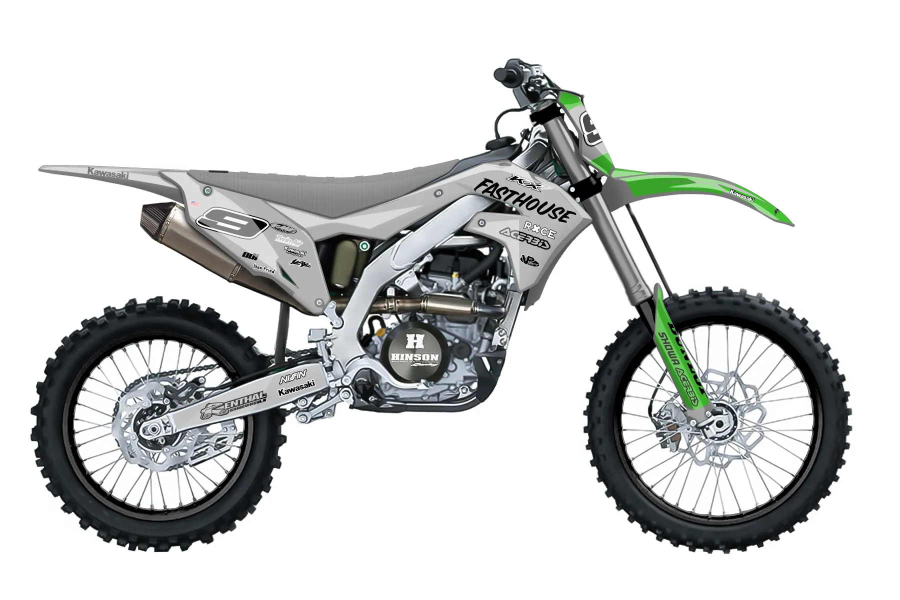 «kx450» — готовый комплект графики серии Untucked для Kawasaki MX Graphic Kit Kawasaki KXF 450 X 2021. В комплекте: графика на бак и боковые облицовки, крылья (переднее и заднее), передний щиток, номерные таблички, защита вилки. Материал: ПВХ-винил 80 мкр с холодной ламинацией 300 мкр, общая толщина 380 мкр; покрытие глянцевое или матовое на выбор. Устойчив к UV-излучению, воде, бензину и мойке высокого давления. Клей акриловый на сольвентной основе — постоянный, для гибких пластиков. На простых поверхностях монтируется без нагрева; для сложных изгибов рекомендуем фен. Этот пресет можно заказать как есть или взять за основу в конструкторе: поменять цвета, добавить стартовый номер и свой бренд. Производство — 3–5 рабочих дней, доставка по России СДЭКом или Почтой, по СНГ — курьерскими службами.