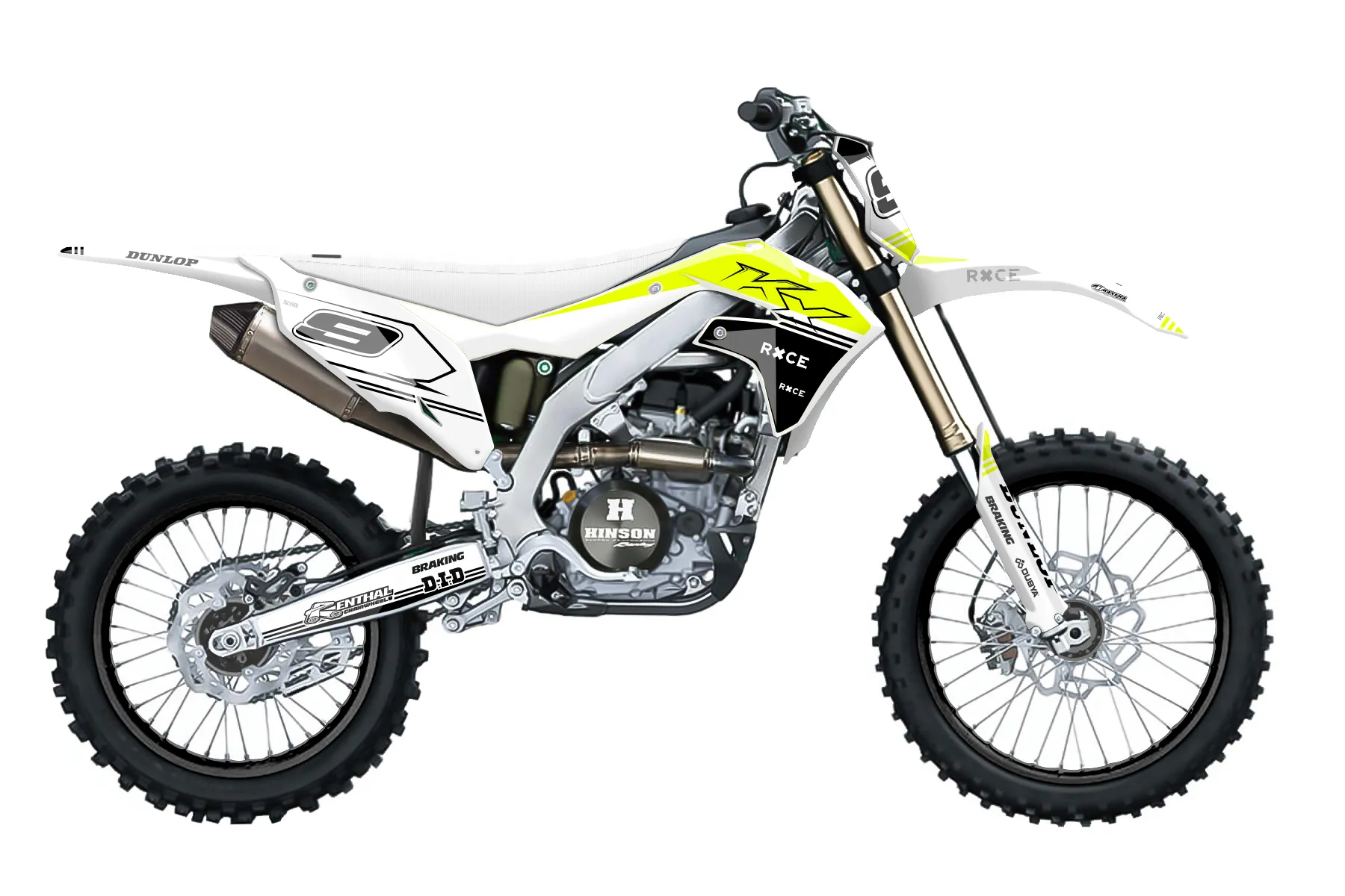 «Vivid Neon» — готовый комплект графики серии Untucked для Kawasaki MX Graphic Kit Kawasaki KXF 450 X 2021. В комплекте: графика на бак и боковые облицовки, крылья (переднее и заднее), передний щиток, номерные таблички, защита вилки. Материал: ПВХ-винил 80 мкр с холодной ламинацией 300 мкр, общая толщина 380 мкр; покрытие глянцевое или матовое на выбор. Устойчив к UV-излучению, воде, бензину и мойке высокого давления. Клей акриловый на сольвентной основе — постоянный, для гибких пластиков. На простых поверхностях монтируется без нагрева; для сложных изгибов рекомендуем фен. Этот пресет можно заказать как есть или взять за основу в конструкторе: поменять цвета, добавить стартовый номер и свой бренд. Производство — 3–5 рабочих дней, доставка по России СДЭКом или Почтой, по СНГ — курьерскими службами.