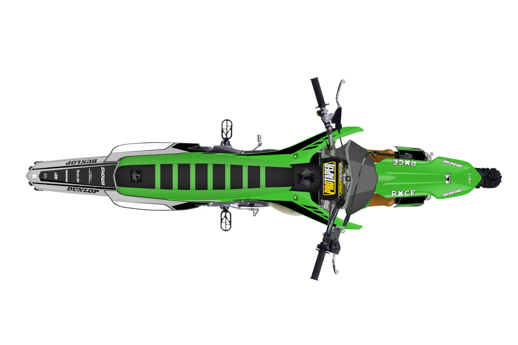 «Concepts» — готовый комплект графики серии Maverick для Kawasaki MX Graphic Kit Kawasaki KX 250 Restyle 2003. В комплекте: графика на бак и боковые облицовки, крылья (переднее и заднее), передний щиток, номерные таблички, защита вилки. Материал: ПВХ-винил 80 мкр с холодной ламинацией 300 мкр, общая толщина 380 мкр; покрытие глянцевое или матовое на выбор. Устойчив к UV-излучению, воде, бензину и мойке высокого давления. Клей акриловый на сольвентной основе — постоянный, для гибких пластиков. На простых поверхностях монтируется без нагрева; для сложных изгибов рекомендуем фен. Этот пресет можно заказать как есть или взять за основу в конструкторе: поменять цвета, добавить стартовый номер и свой бренд. Производство — 3–5 рабочих дней, доставка по России СДЭКом или Почтой, по СНГ — курьерскими службами.