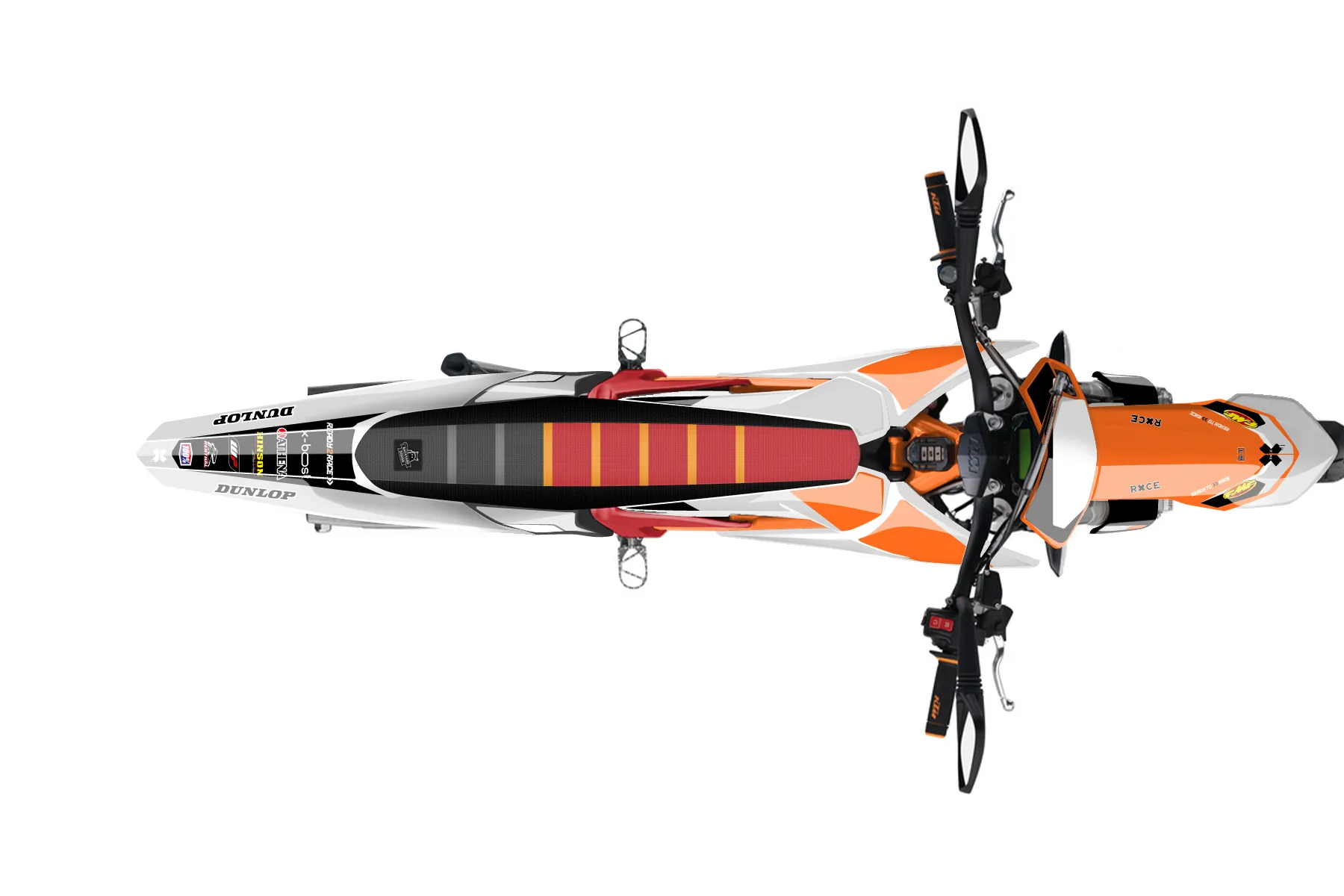«Answer» — готовый комплект графики серии Flow для KTM MX Graphic Kit KTM E-SX Freeride 2012. В комплекте: графика на бак и боковые облицовки, крылья (переднее и заднее), передний щиток, номерные таблички, защита вилки. Материал: ПВХ-винил 80 мкр с холодной ламинацией 300 мкр, общая толщина 380 мкр; покрытие глянцевое или матовое на выбор. Устойчив к UV-излучению, воде, бензину и мойке высокого давления. Клей акриловый на сольвентной основе — постоянный, для гибких пластиков. На простых поверхностях монтируется без нагрева; для сложных изгибов рекомендуем фен. Этот пресет можно заказать как есть или взять за основу в конструкторе: поменять цвета, добавить стартовый номер и свой бренд. Производство — 3–5 рабочих дней, доставка по России СДЭКом или Почтой, по СНГ — курьерскими службами.