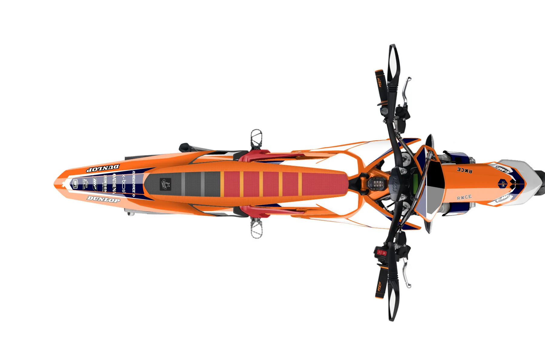 «Chill» — готовый комплект графики серии Flow для KTM MX Graphic Kit KTM E-SX Freeride 2012. В комплекте: графика на бак и боковые облицовки, крылья (переднее и заднее), передний щиток, номерные таблички, защита вилки. Материал: ПВХ-винил 80 мкр с холодной ламинацией 300 мкр, общая толщина 380 мкр; покрытие глянцевое или матовое на выбор. Устойчив к UV-излучению, воде, бензину и мойке высокого давления. Клей акриловый на сольвентной основе — постоянный, для гибких пластиков. На простых поверхностях монтируется без нагрева; для сложных изгибов рекомендуем фен. Этот пресет можно заказать как есть или взять за основу в конструкторе: поменять цвета, добавить стартовый номер и свой бренд. Производство — 3–5 рабочих дней, доставка по России СДЭКом или Почтой, по СНГ — курьерскими службами.
