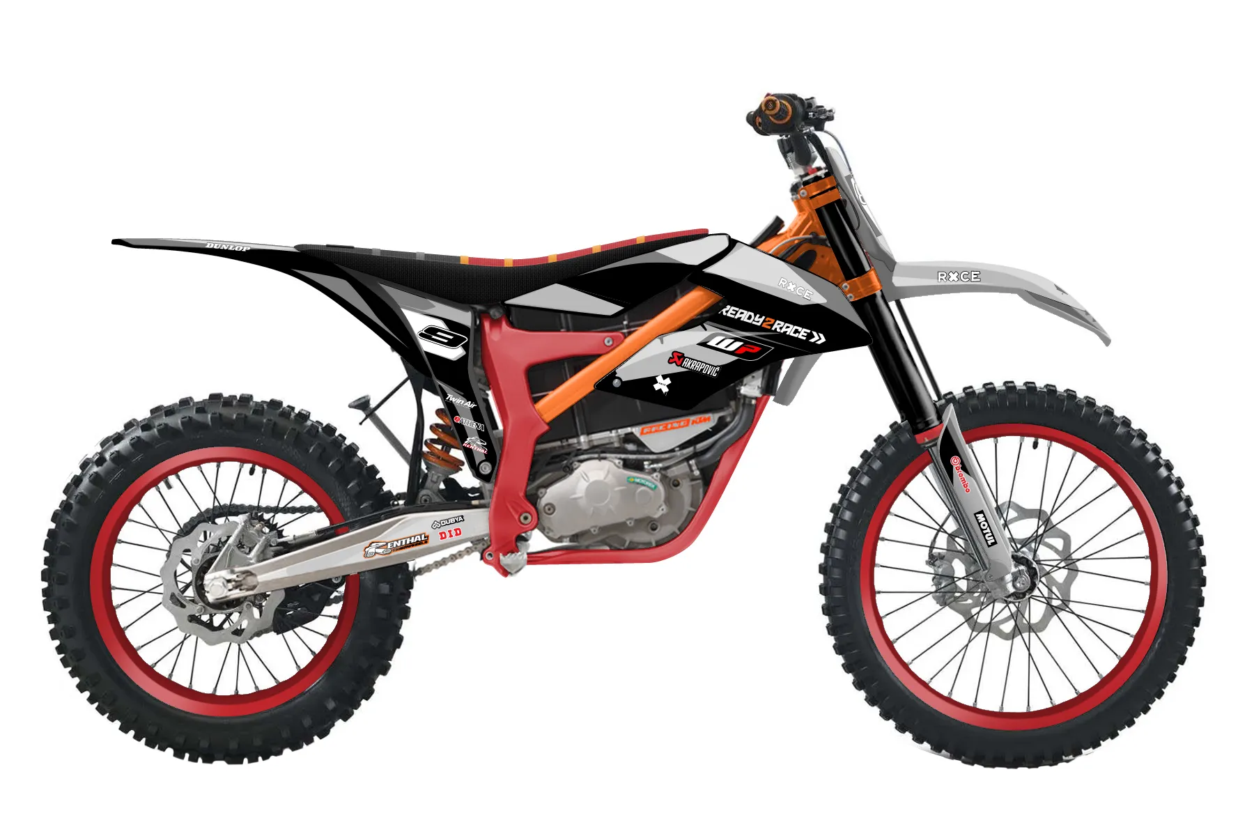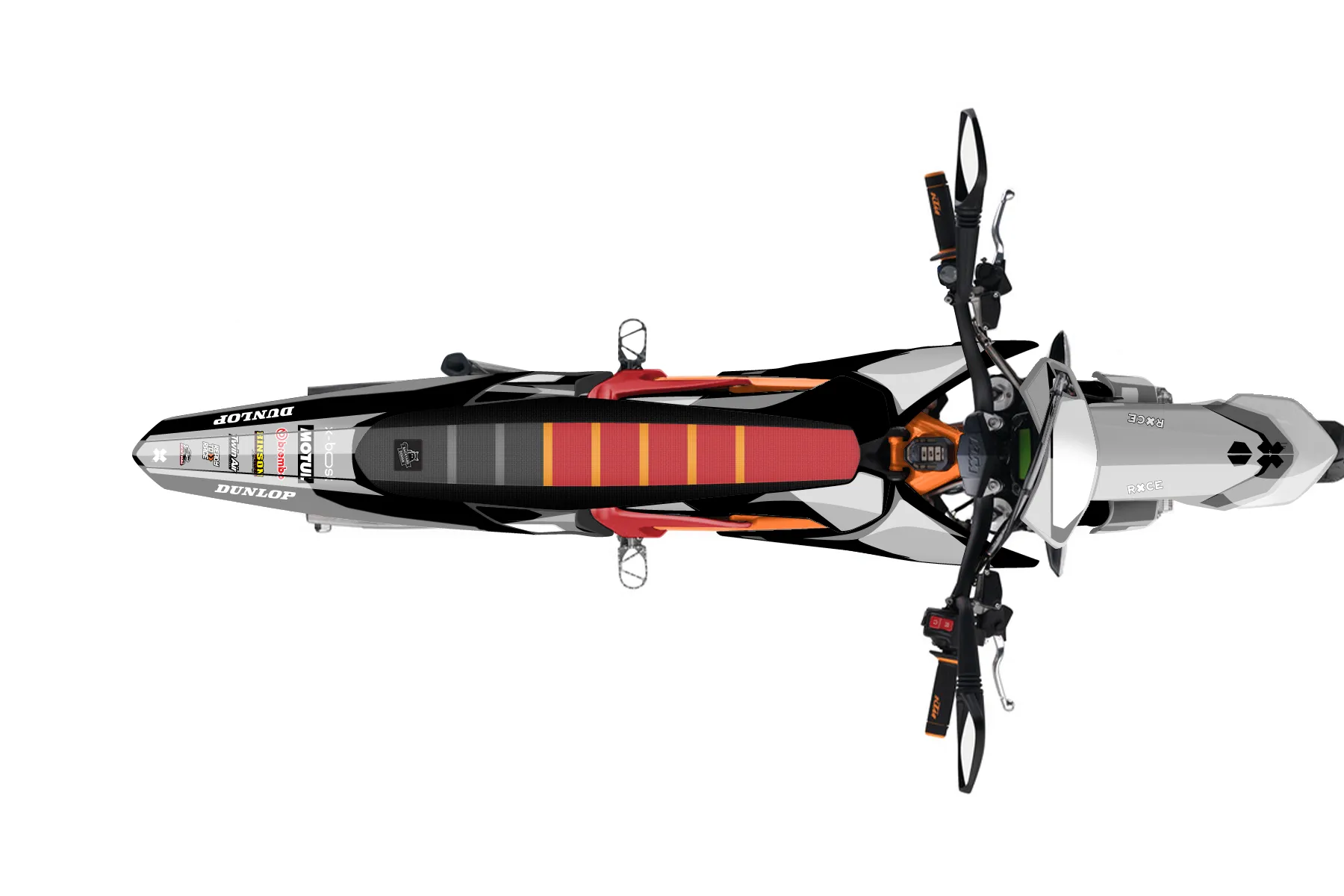 «Concepts» — готовый комплект графики серии Flow для KTM MX Graphic Kit KTM E-SX Freeride 2012. В комплекте: графика на бак и боковые облицовки, крылья (переднее и заднее), передний щиток, номерные таблички, защита вилки. Материал: ПВХ-винил 80 мкр с холодной ламинацией 300 мкр, общая толщина 380 мкр; покрытие глянцевое или матовое на выбор. Устойчив к UV-излучению, воде, бензину и мойке высокого давления. Клей акриловый на сольвентной основе — постоянный, для гибких пластиков. На простых поверхностях монтируется без нагрева; для сложных изгибов рекомендуем фен. Этот пресет можно заказать как есть или взять за основу в конструкторе: поменять цвета, добавить стартовый номер и свой бренд. Производство — 3–5 рабочих дней, доставка по России СДЭКом или Почтой, по СНГ — курьерскими службами.