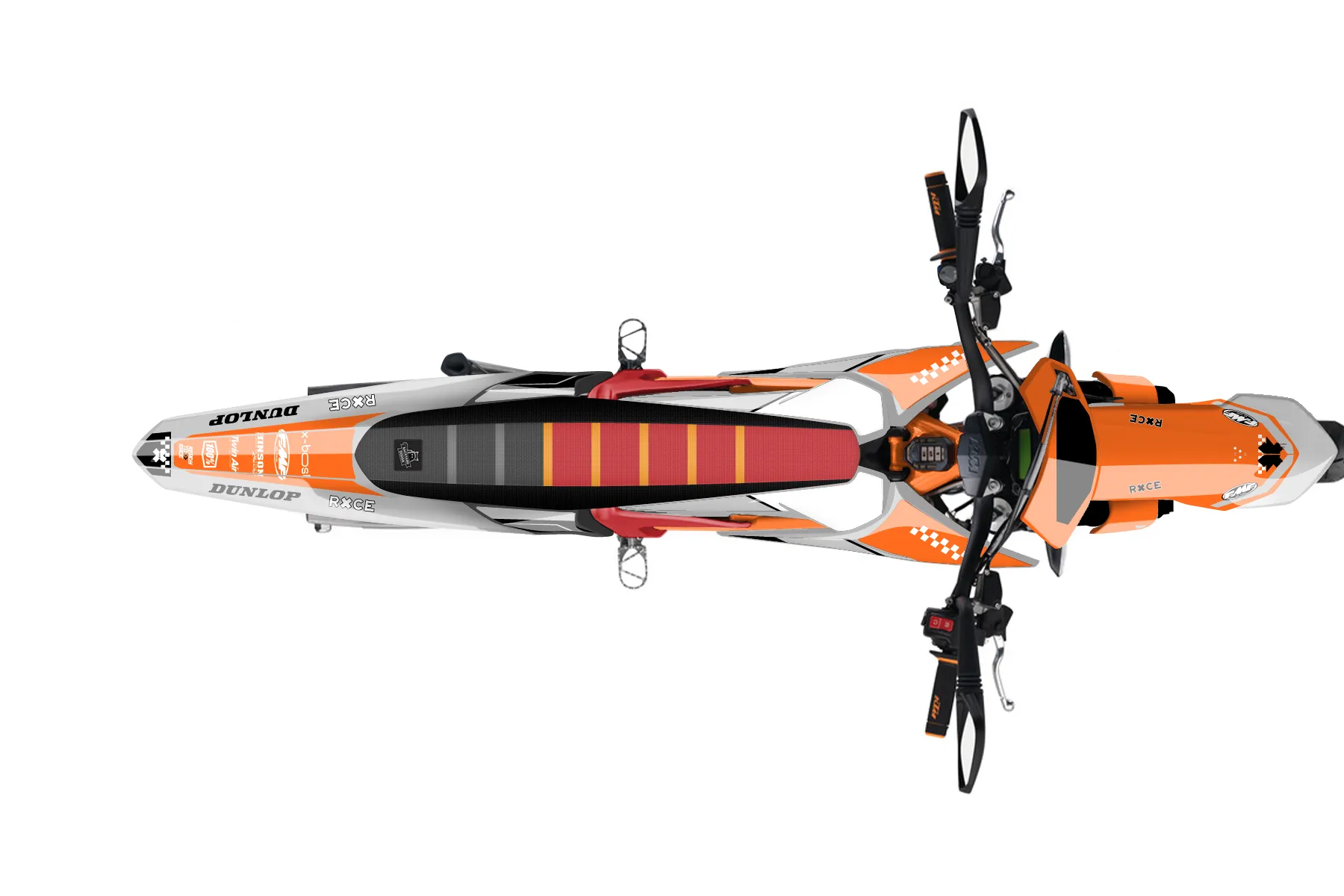 «Canon» — готовый комплект графики серии Staple для KTM MX Graphic Kit KTM E-SX Freeride 2012. В комплекте: графика на бак и боковые облицовки, крылья (переднее и заднее), передний щиток, номерные таблички, защита вилки. Материал: ПВХ-винил 80 мкр с холодной ламинацией 300 мкр, общая толщина 380 мкр; покрытие глянцевое или матовое на выбор. Устойчив к UV-излучению, воде, бензину и мойке высокого давления. Клей акриловый на сольвентной основе — постоянный, для гибких пластиков. На простых поверхностях монтируется без нагрева; для сложных изгибов рекомендуем фен. Этот пресет можно заказать как есть или взять за основу в конструкторе: поменять цвета, добавить стартовый номер и свой бренд. Производство — 3–5 рабочих дней, доставка по России СДЭКом или Почтой, по СНГ — курьерскими службами.