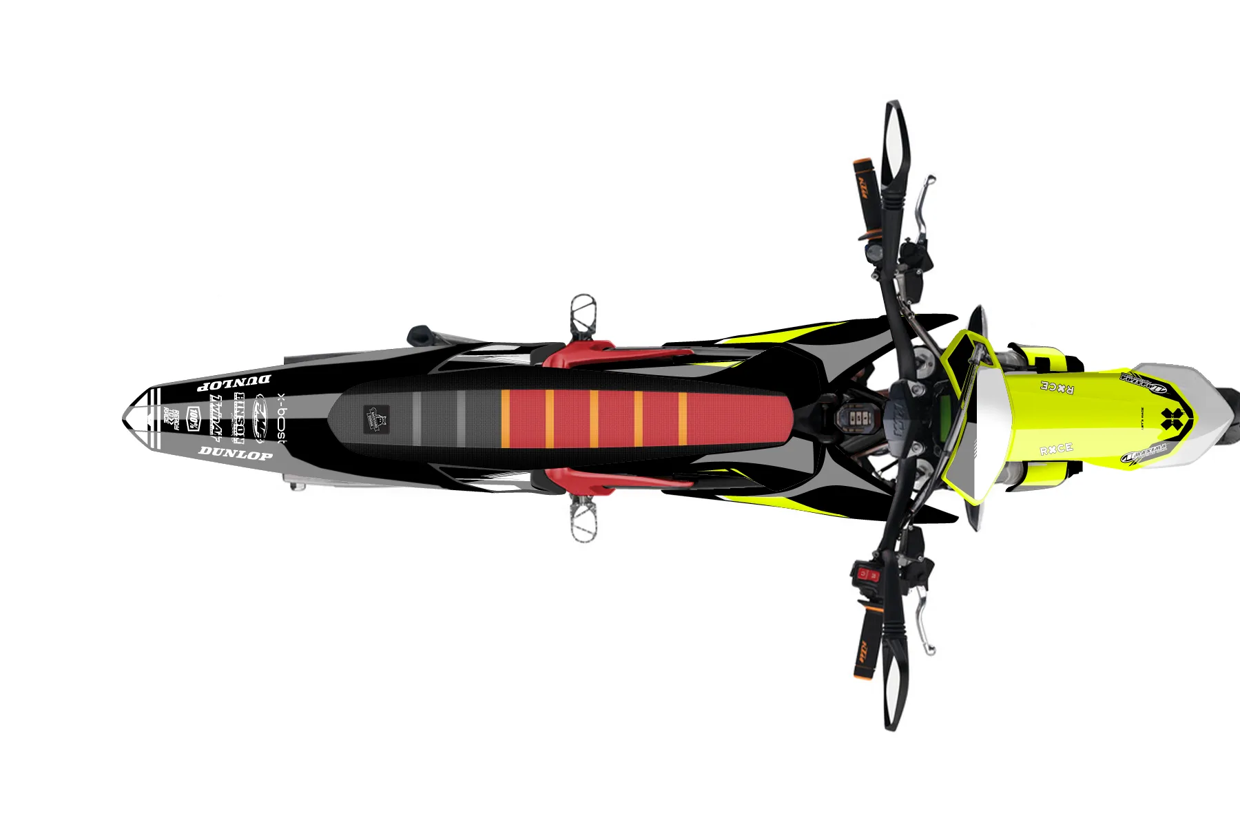 «Chill Fluorscent» — готовый комплект графики серии Untucked для KTM MX Graphic Kit KTM E-SX Freeride 2012. В комплекте: графика на бак и боковые облицовки, крылья (переднее и заднее), передний щиток, номерные таблички, защита вилки. Материал: ПВХ-винил 80 мкр с холодной ламинацией 300 мкр, общая толщина 380 мкр; покрытие глянцевое или матовое на выбор. Устойчив к UV-излучению, воде, бензину и мойке высокого давления. Клей акриловый на сольвентной основе — постоянный, для гибких пластиков. На простых поверхностях монтируется без нагрева; для сложных изгибов рекомендуем фен. Этот пресет можно заказать как есть или взять за основу в конструкторе: поменять цвета, добавить стартовый номер и свой бренд. Производство — 3–5 рабочих дней, доставка по России СДЭКом или Почтой, по СНГ — курьерскими службами.