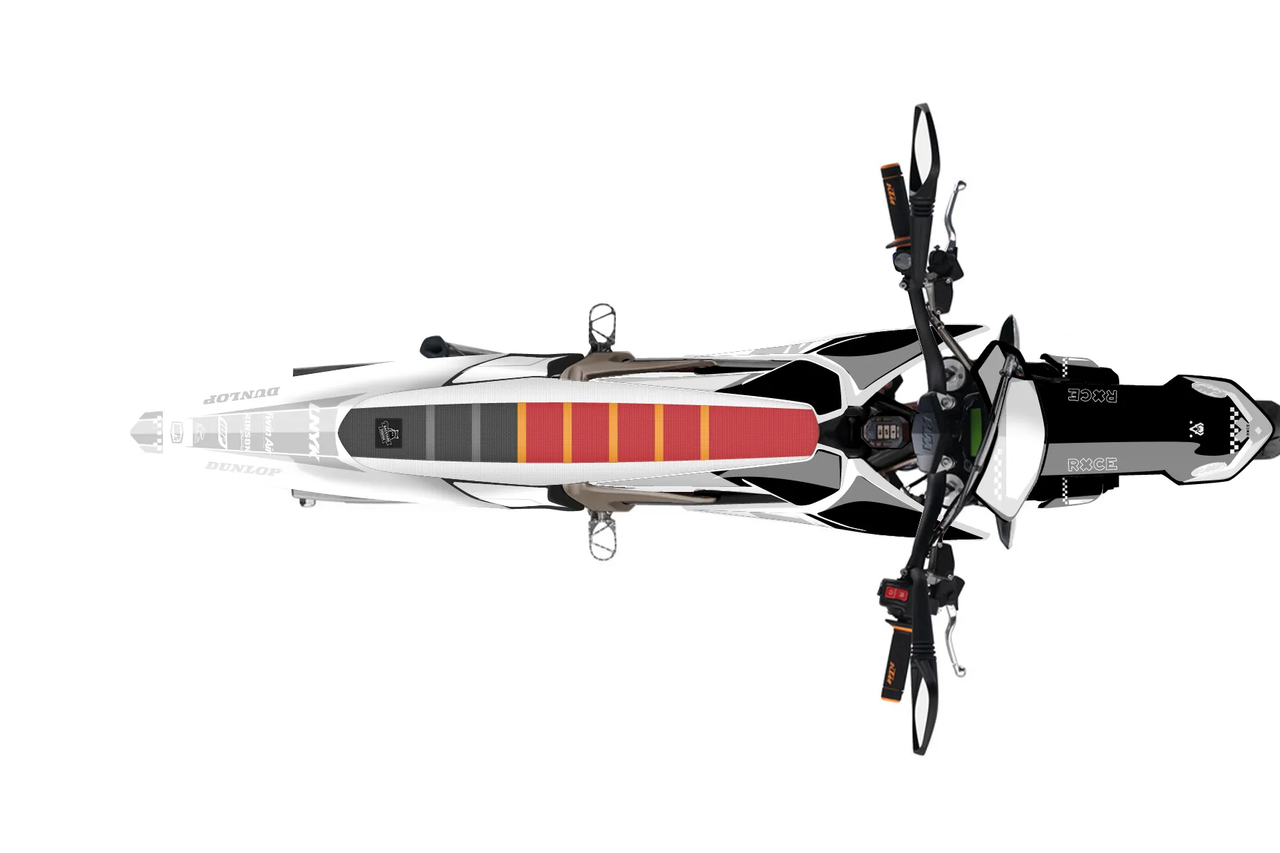 «Charge» — готовый комплект графики серии Staple для KTM MX Graphic Kit KTM E-SX Freeride 2019. В комплекте: графика на бак и боковые облицовки, крылья (переднее и заднее), передний щиток, номерные таблички, защита вилки. Материал: ПВХ-винил 80 мкр с холодной ламинацией 300 мкр, общая толщина 380 мкр; покрытие глянцевое или матовое на выбор. Устойчив к UV-излучению, воде, бензину и мойке высокого давления. Клей акриловый на сольвентной основе — постоянный, для гибких пластиков. На простых поверхностях монтируется без нагрева; для сложных изгибов рекомендуем фен. Этот пресет можно заказать как есть или взять за основу в конструкторе: поменять цвета, добавить стартовый номер и свой бренд. Производство — 3–5 рабочих дней, доставка по России СДЭКом или Почтой, по СНГ — курьерскими службами.