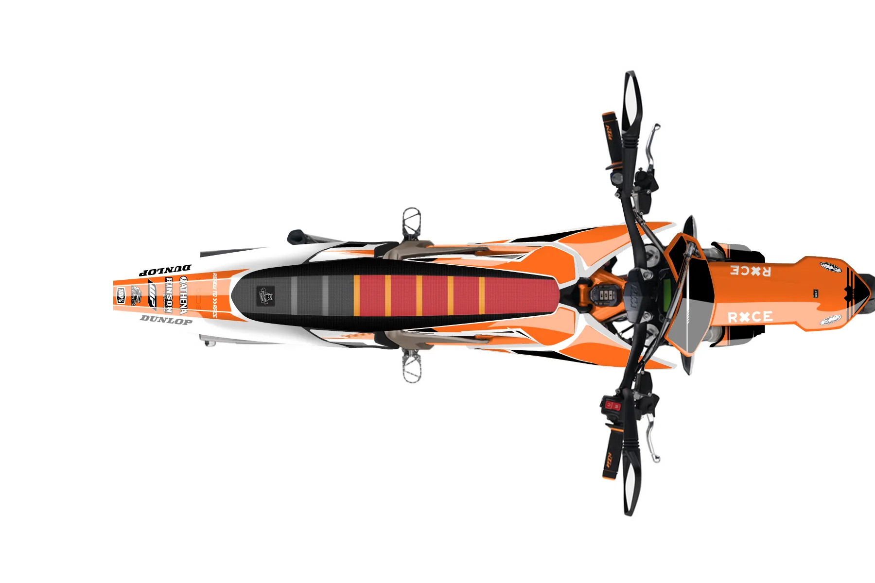«Crowning» — готовый комплект графики серии Untucked для KTM MX Graphic Kit KTM E-SX Freeride 2019. В комплекте: графика на бак и боковые облицовки, крылья (переднее и заднее), передний щиток, номерные таблички, защита вилки. Материал: ПВХ-винил 80 мкр с холодной ламинацией 300 мкр, общая толщина 380 мкр; покрытие глянцевое или матовое на выбор. Устойчив к UV-излучению, воде, бензину и мойке высокого давления. Клей акриловый на сольвентной основе — постоянный, для гибких пластиков. На простых поверхностях монтируется без нагрева; для сложных изгибов рекомендуем фен. Этот пресет можно заказать как есть или взять за основу в конструкторе: поменять цвета, добавить стартовый номер и свой бренд. Производство — 3–5 рабочих дней, доставка по России СДЭКом или Почтой, по СНГ — курьерскими службами.