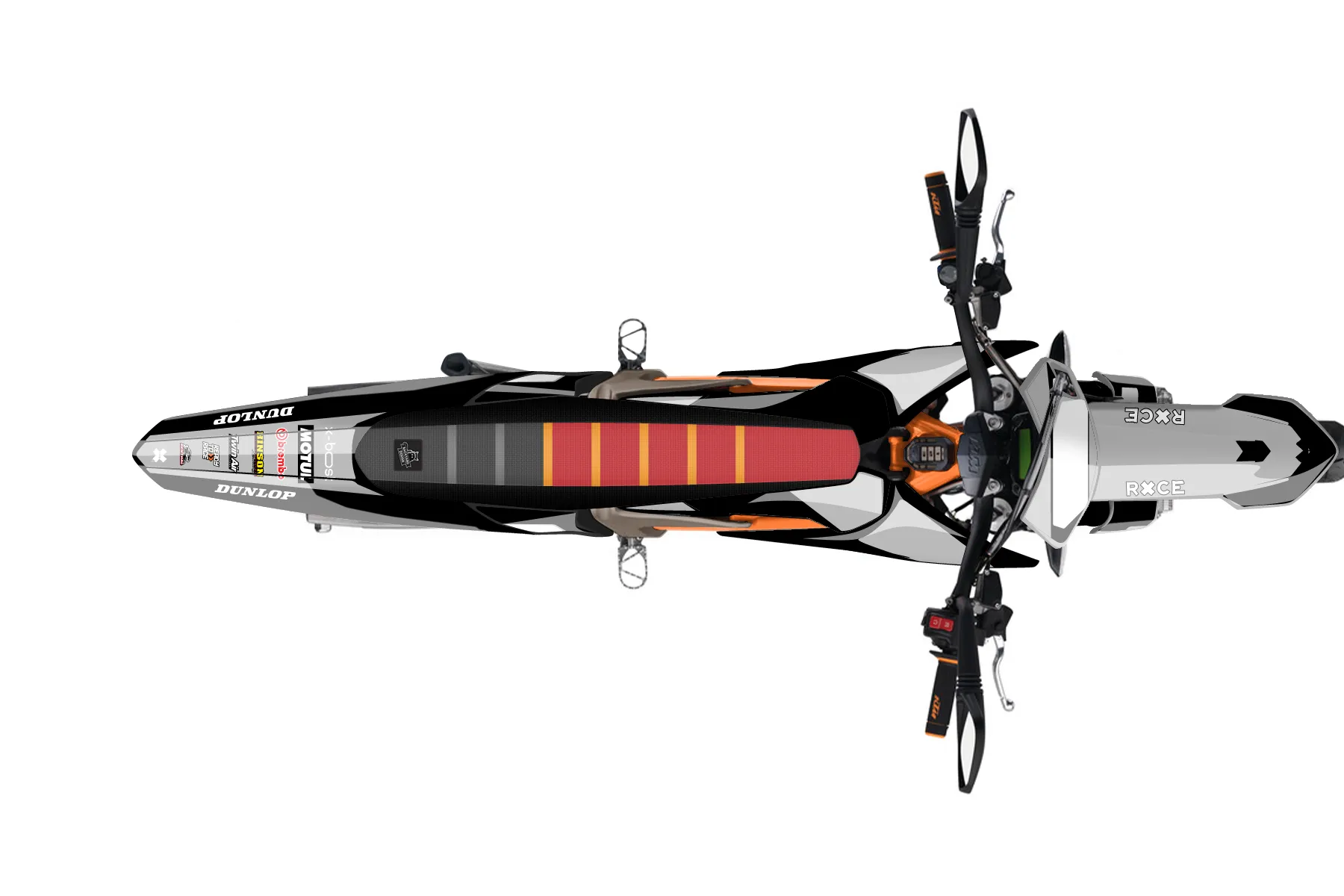 «Concepts» — готовый комплект графики серии Flow для KTM MX Graphic Kit KTM E-XC Freeride 2019. В комплекте: графика на бак и боковые облицовки, крылья (переднее и заднее), передний щиток, номерные таблички, защита вилки. Материал: ПВХ-винил 80 мкр с холодной ламинацией 300 мкр, общая толщина 380 мкр; покрытие глянцевое или матовое на выбор. Устойчив к UV-излучению, воде, бензину и мойке высокого давления. Клей акриловый на сольвентной основе — постоянный, для гибких пластиков. На простых поверхностях монтируется без нагрева; для сложных изгибов рекомендуем фен. Этот пресет можно заказать как есть или взять за основу в конструкторе: поменять цвета, добавить стартовый номер и свой бренд. Производство — 3–5 рабочих дней, доставка по России СДЭКом или Почтой, по СНГ — курьерскими службами.