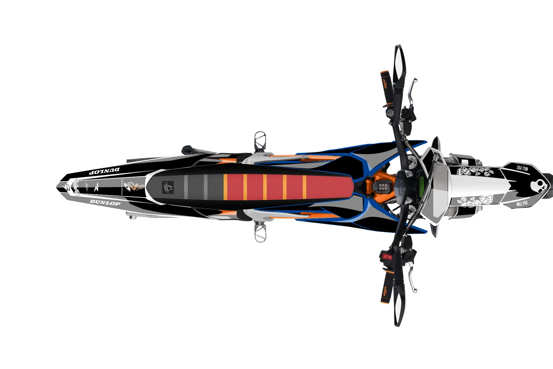 «Freeride Ranch» — готовый комплект графики серии Flow для KTM MX Graphic Kit KTM E-XC Freeride 2019. В комплекте: графика на бак и боковые облицовки, крылья (переднее и заднее), передний щиток, номерные таблички, защита вилки. Материал: ПВХ-винил 80 мкр с холодной ламинацией 300 мкр, общая толщина 380 мкр; покрытие глянцевое или матовое на выбор. Устойчив к UV-излучению, воде, бензину и мойке высокого давления. Клей акриловый на сольвентной основе — постоянный, для гибких пластиков. На простых поверхностях монтируется без нагрева; для сложных изгибов рекомендуем фен. Этот пресет можно заказать как есть или взять за основу в конструкторе: поменять цвета, добавить стартовый номер и свой бренд. Производство — 3–5 рабочих дней, доставка по России СДЭКом или Почтой, по СНГ — курьерскими службами.