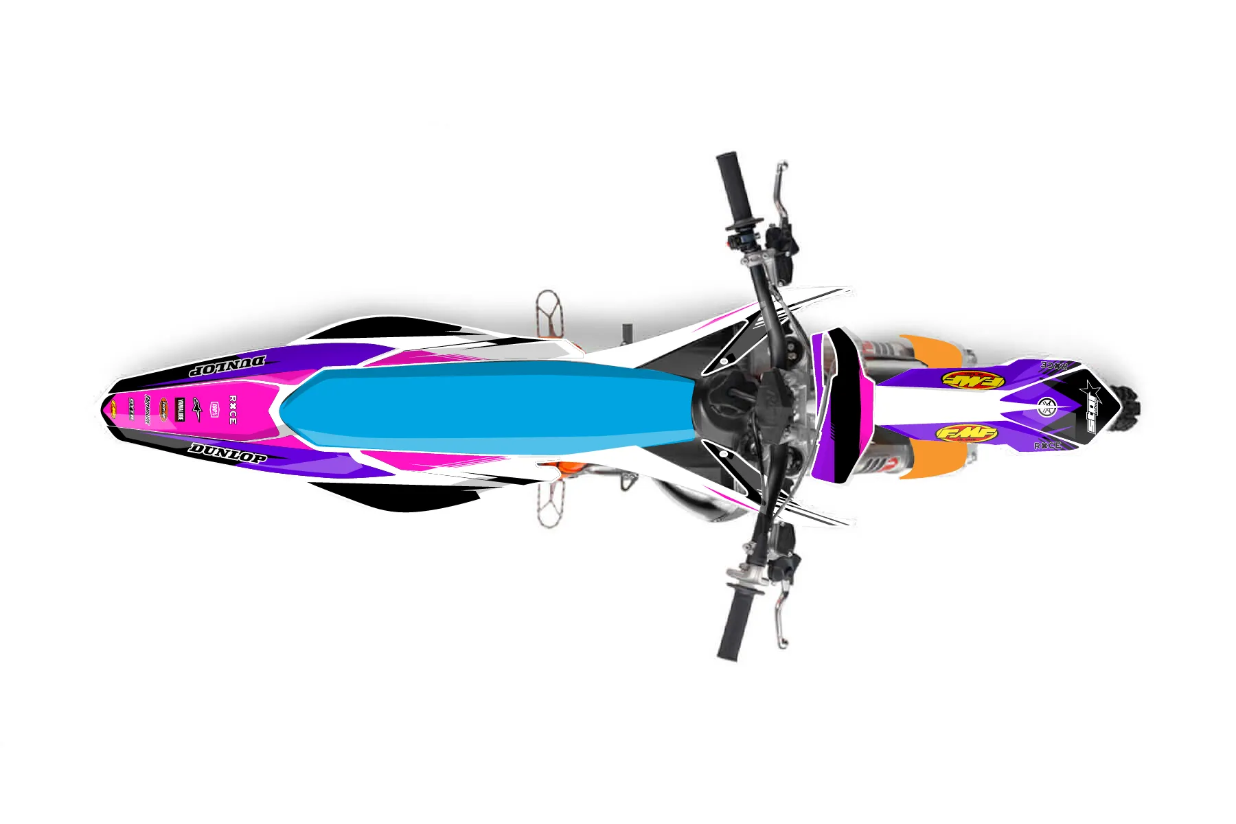 «retro» — готовый комплект графики серии Factory для KTM MX Graphic Kit KTM SX 125 2015. В комплекте: графика на бак и боковые облицовки, крылья (переднее и заднее), передний щиток, номерные таблички, защита вилки. Материал: ПВХ-винил 80 мкр с холодной ламинацией 300 мкр, общая толщина 380 мкр; покрытие глянцевое или матовое на выбор. Устойчив к UV-излучению, воде, бензину и мойке высокого давления. Клей акриловый на сольвентной основе — постоянный, для гибких пластиков. На простых поверхностях монтируется без нагрева; для сложных изгибов рекомендуем фен. Этот пресет можно заказать как есть или взять за основу в конструкторе: поменять цвета, добавить стартовый номер и свой бренд. Производство — 3–5 рабочих дней, доставка по России СДЭКом или Почтой, по СНГ — курьерскими службами.