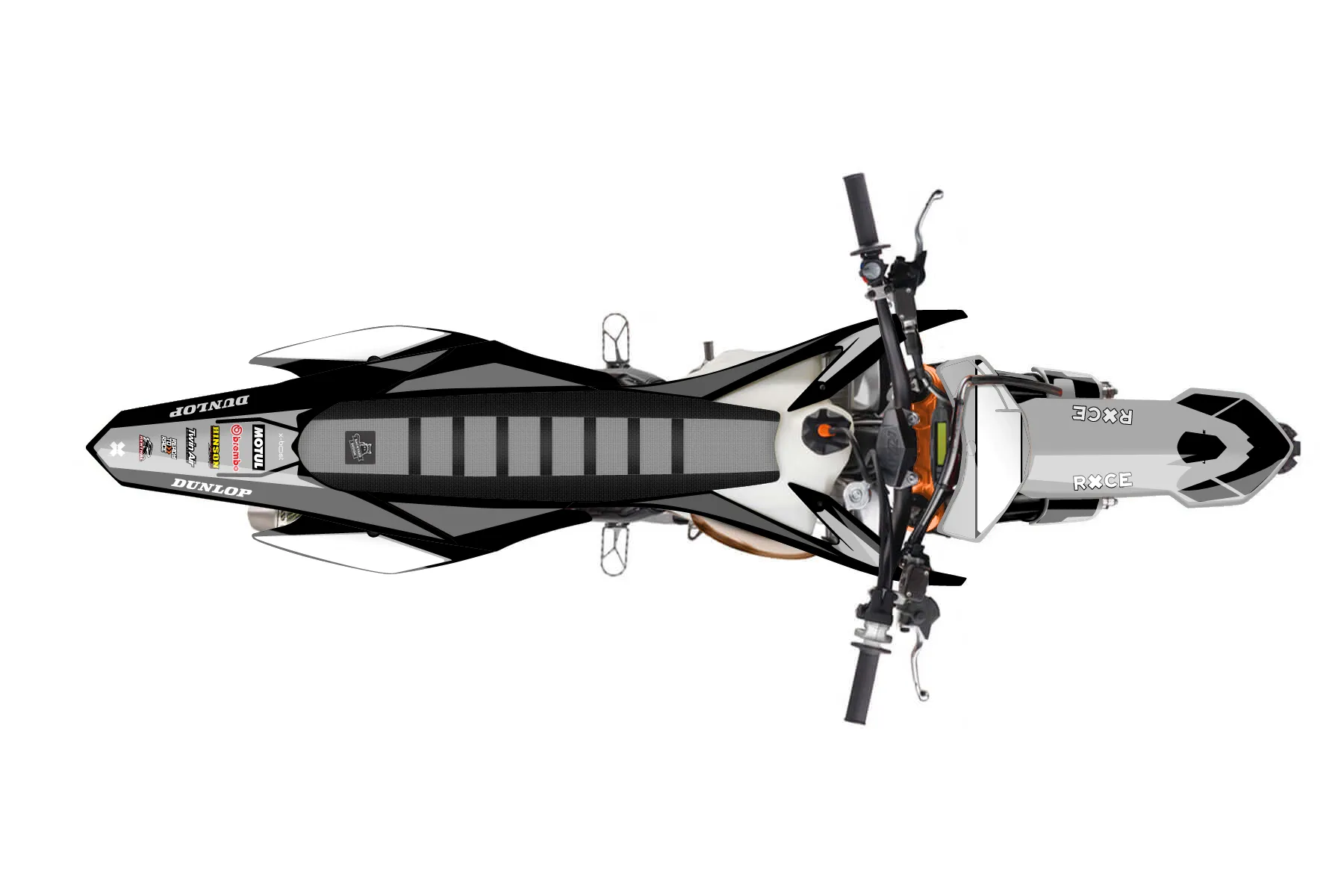 «Concepts» — готовый комплект графики серии Flow для KTM MX Graphic Kit KTM SX 125 2015. В комплекте: графика на бак и боковые облицовки, крылья (переднее и заднее), передний щиток, номерные таблички, защита вилки. Материал: ПВХ-винил 80 мкр с холодной ламинацией 300 мкр, общая толщина 380 мкр; покрытие глянцевое или матовое на выбор. Устойчив к UV-излучению, воде, бензину и мойке высокого давления. Клей акриловый на сольвентной основе — постоянный, для гибких пластиков. На простых поверхностях монтируется без нагрева; для сложных изгибов рекомендуем фен. Этот пресет можно заказать как есть или взять за основу в конструкторе: поменять цвета, добавить стартовый номер и свой бренд. Производство — 3–5 рабочих дней, доставка по России СДЭКом или Почтой, по СНГ — курьерскими службами.