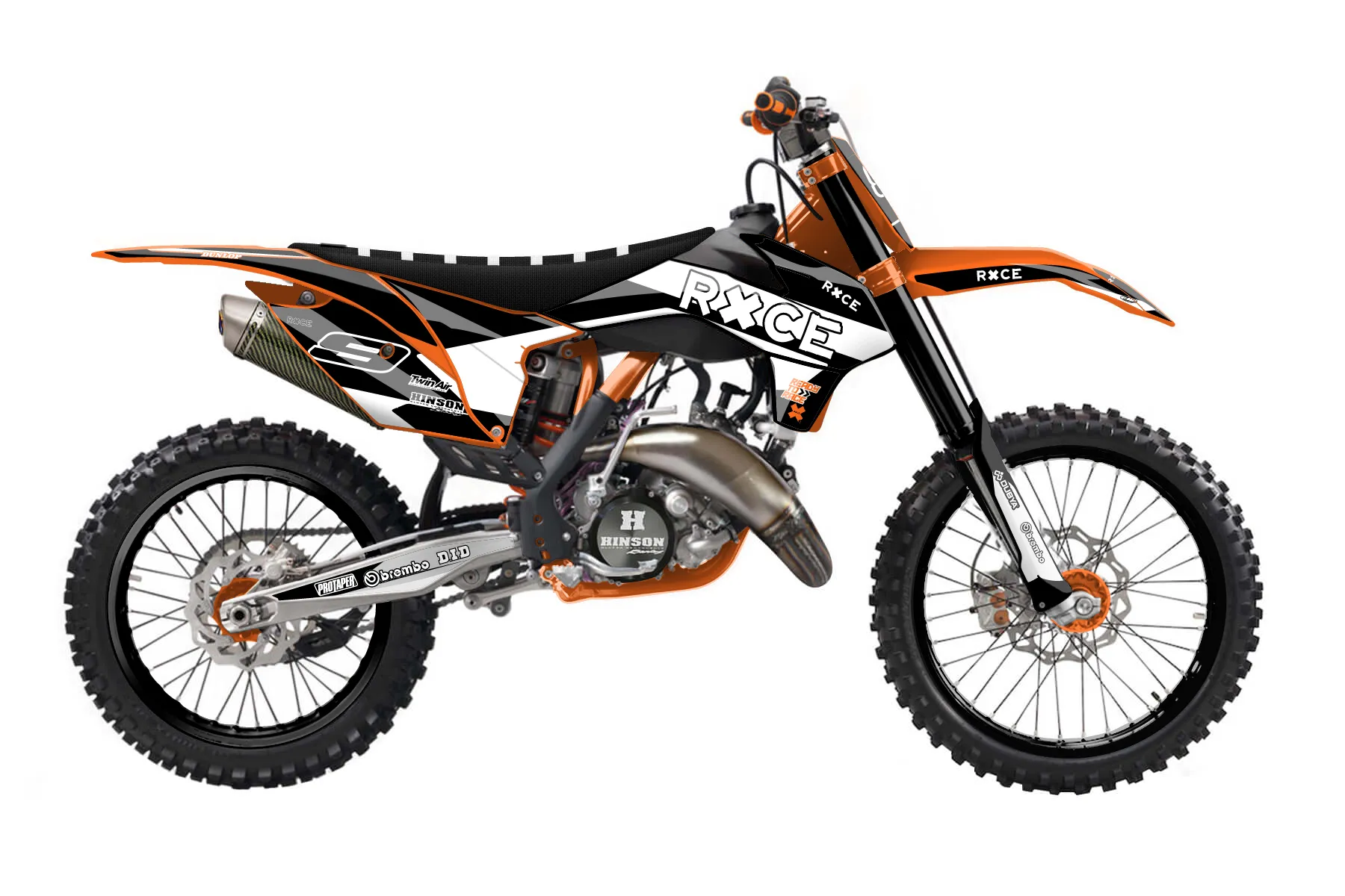 «Race» — готовый комплект графики серии Flow для KTM MX Graphic Kit KTM SX 125 2015. В комплекте: графика на бак и боковые облицовки, крылья (переднее и заднее), передний щиток, номерные таблички, защита вилки. Материал: ПВХ-винил 80 мкр с холодной ламинацией 300 мкр, общая толщина 380 мкр; покрытие глянцевое или матовое на выбор. Устойчив к UV-излучению, воде, бензину и мойке высокого давления. Клей акриловый на сольвентной основе — постоянный, для гибких пластиков. На простых поверхностях монтируется без нагрева; для сложных изгибов рекомендуем фен. Этот пресет можно заказать как есть или взять за основу в конструкторе: поменять цвета, добавить стартовый номер и свой бренд. Производство — 3–5 рабочих дней, доставка по России СДЭКом или Почтой, по СНГ — курьерскими службами.