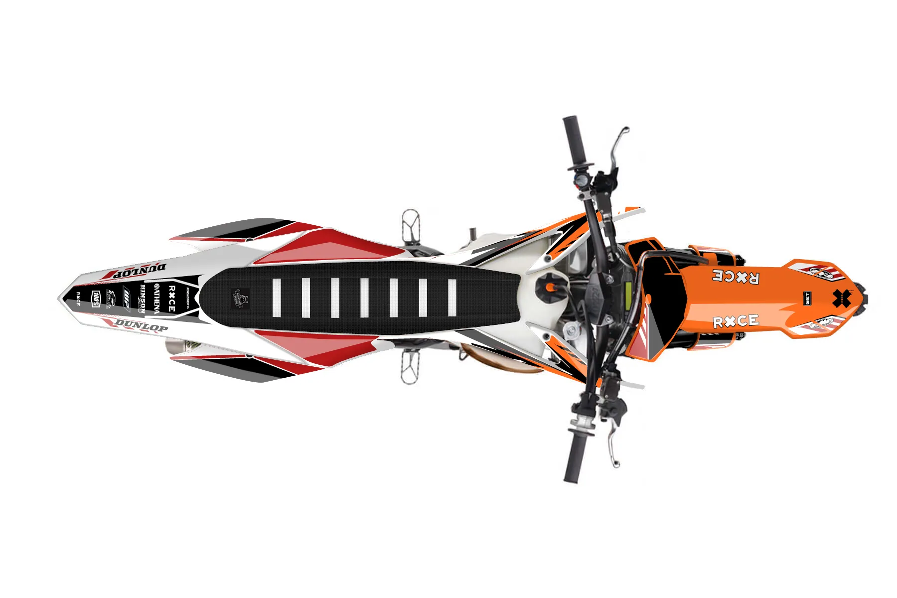 «Dude» — готовый комплект графики серии Maverick для KTM MX Graphic Kit KTM SX 125 2015. В комплекте: графика на бак и боковые облицовки, крылья (переднее и заднее), передний щиток, номерные таблички, защита вилки. Материал: ПВХ-винил 80 мкр с холодной ламинацией 300 мкр, общая толщина 380 мкр; покрытие глянцевое или матовое на выбор. Устойчив к UV-излучению, воде, бензину и мойке высокого давления. Клей акриловый на сольвентной основе — постоянный, для гибких пластиков. На простых поверхностях монтируется без нагрева; для сложных изгибов рекомендуем фен. Этот пресет можно заказать как есть или взять за основу в конструкторе: поменять цвета, добавить стартовый номер и свой бренд. Производство — 3–5 рабочих дней, доставка по России СДЭКом или Почтой, по СНГ — курьерскими службами.
