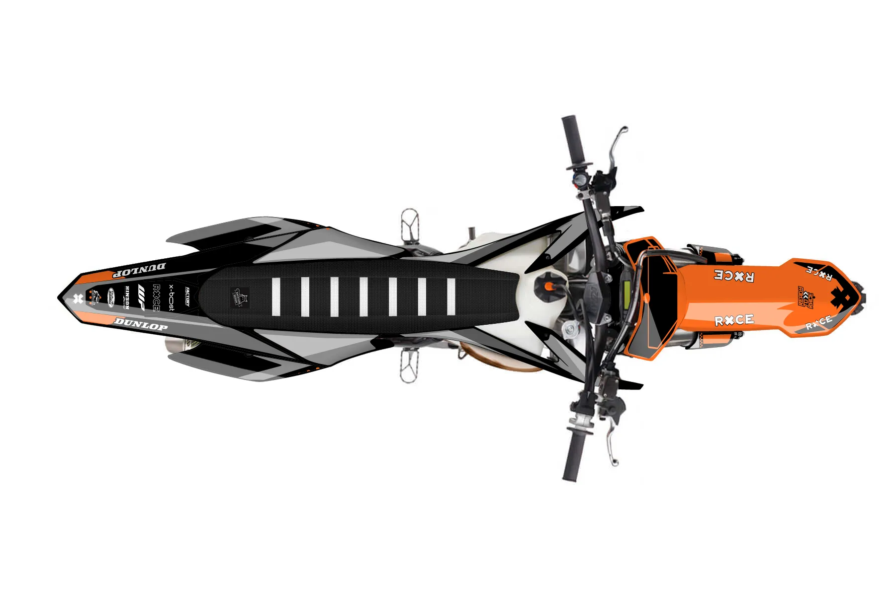 «Cape» — готовый комплект графики серии Staple для KTM MX Graphic Kit KTM SX 125 2015. В комплекте: графика на бак и боковые облицовки, крылья (переднее и заднее), передний щиток, номерные таблички, защита вилки. Материал: ПВХ-винил 80 мкр с холодной ламинацией 300 мкр, общая толщина 380 мкр; покрытие глянцевое или матовое на выбор. Устойчив к UV-излучению, воде, бензину и мойке высокого давления. Клей акриловый на сольвентной основе — постоянный, для гибких пластиков. На простых поверхностях монтируется без нагрева; для сложных изгибов рекомендуем фен. Этот пресет можно заказать как есть или взять за основу в конструкторе: поменять цвета, добавить стартовый номер и свой бренд. Производство — 3–5 рабочих дней, доставка по России СДЭКом или Почтой, по СНГ — курьерскими службами.