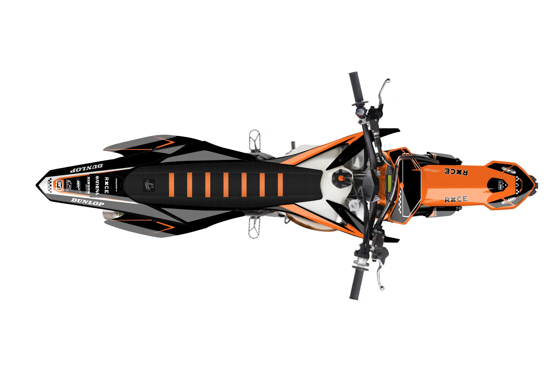 «Zebra» — готовый комплект графики серии Staple для KTM MX Graphic Kit KTM SX 125 2015. В комплекте: графика на бак и боковые облицовки, крылья (переднее и заднее), передний щиток, номерные таблички, защита вилки. Материал: ПВХ-винил 80 мкр с холодной ламинацией 300 мкр, общая толщина 380 мкр; покрытие глянцевое или матовое на выбор. Устойчив к UV-излучению, воде, бензину и мойке высокого давления. Клей акриловый на сольвентной основе — постоянный, для гибких пластиков. На простых поверхностях монтируется без нагрева; для сложных изгибов рекомендуем фен. Этот пресет можно заказать как есть или взять за основу в конструкторе: поменять цвета, добавить стартовый номер и свой бренд. Производство — 3–5 рабочих дней, доставка по России СДЭКом или Почтой, по СНГ — курьерскими службами.