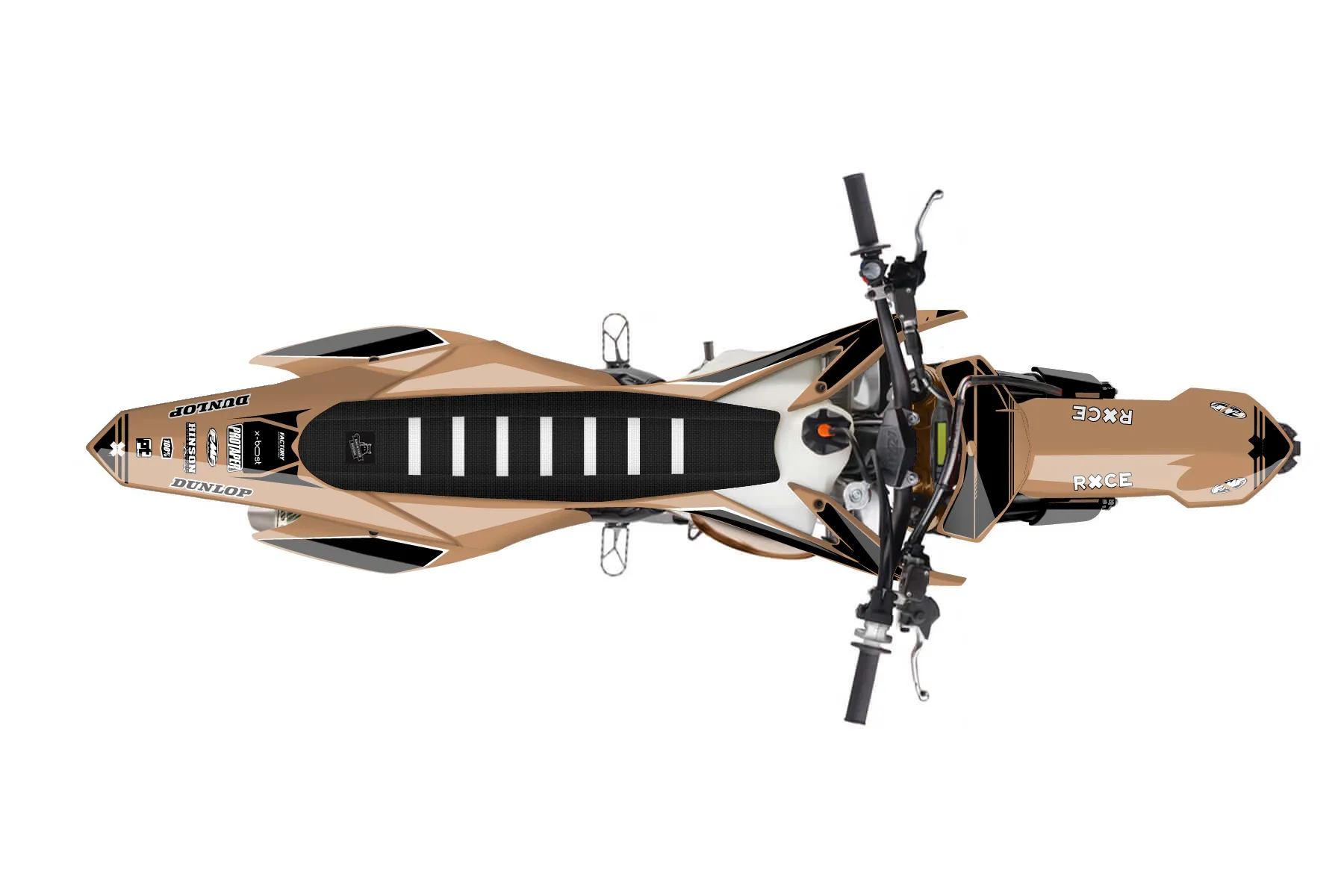 «Entire» — готовый комплект графики серии Untucked для KTM MX Graphic Kit KTM SX 125 2015. В комплекте: графика на бак и боковые облицовки, крылья (переднее и заднее), передний щиток, номерные таблички, защита вилки. Материал: ПВХ-винил 80 мкр с холодной ламинацией 300 мкр, общая толщина 380 мкр; покрытие глянцевое или матовое на выбор. Устойчив к UV-излучению, воде, бензину и мойке высокого давления. Клей акриловый на сольвентной основе — постоянный, для гибких пластиков. На простых поверхностях монтируется без нагрева; для сложных изгибов рекомендуем фен. Этот пресет можно заказать как есть или взять за основу в конструкторе: поменять цвета, добавить стартовый номер и свой бренд. Производство — 3–5 рабочих дней, доставка по России СДЭКом или Почтой, по СНГ — курьерскими службами.