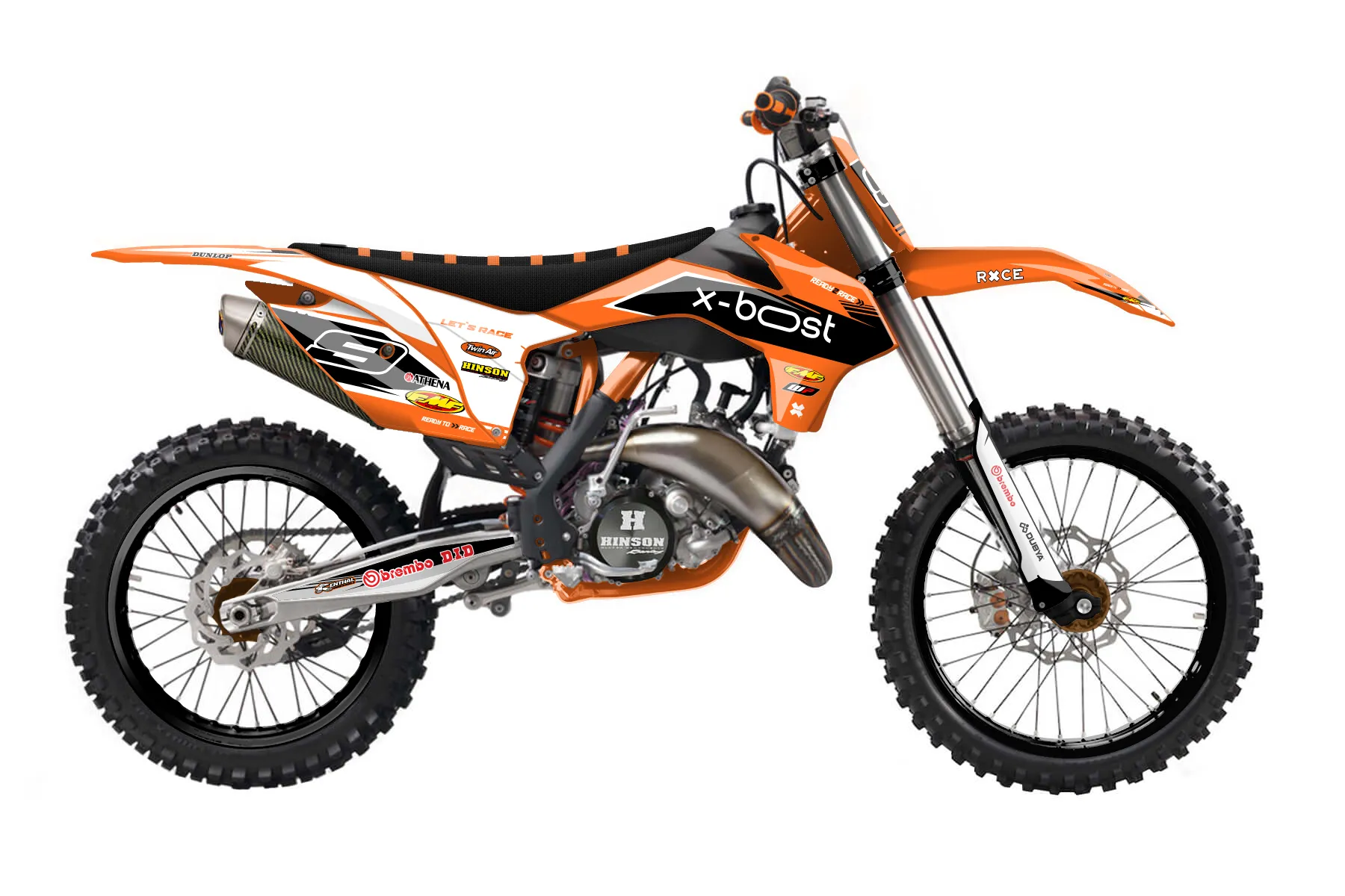 «Proven» — готовый комплект графики серии Untucked для KTM MX Graphic Kit KTM SX 125 2015. В комплекте: графика на бак и боковые облицовки, крылья (переднее и заднее), передний щиток, номерные таблички, защита вилки. Материал: ПВХ-винил 80 мкр с холодной ламинацией 300 мкр, общая толщина 380 мкр; покрытие глянцевое или матовое на выбор. Устойчив к UV-излучению, воде, бензину и мойке высокого давления. Клей акриловый на сольвентной основе — постоянный, для гибких пластиков. На простых поверхностях монтируется без нагрева; для сложных изгибов рекомендуем фен. Этот пресет можно заказать как есть или взять за основу в конструкторе: поменять цвета, добавить стартовый номер и свой бренд. Производство — 3–5 рабочих дней, доставка по России СДЭКом или Почтой, по СНГ — курьерскими службами.