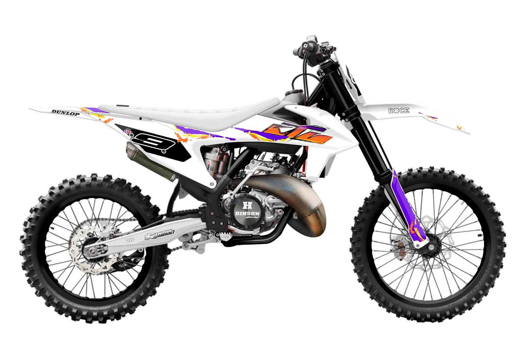 «Leo» — готовый комплект графики серии Flow для KTM MX Graphic Kit KTM SX 125 2019. В комплекте: графика на бак и боковые облицовки, крылья (переднее и заднее), передний щиток, номерные таблички, защита вилки. Материал: ПВХ-винил 80 мкр с холодной ламинацией 300 мкр, общая толщина 380 мкр; покрытие глянцевое или матовое на выбор. Устойчив к UV-излучению, воде, бензину и мойке высокого давления. Клей акриловый на сольвентной основе — постоянный, для гибких пластиков. На простых поверхностях монтируется без нагрева; для сложных изгибов рекомендуем фен. Этот пресет можно заказать как есть или взять за основу в конструкторе: поменять цвета, добавить стартовый номер и свой бренд. Производство — 3–5 рабочих дней, доставка по России СДЭКом или Почтой, по СНГ — курьерскими службами.