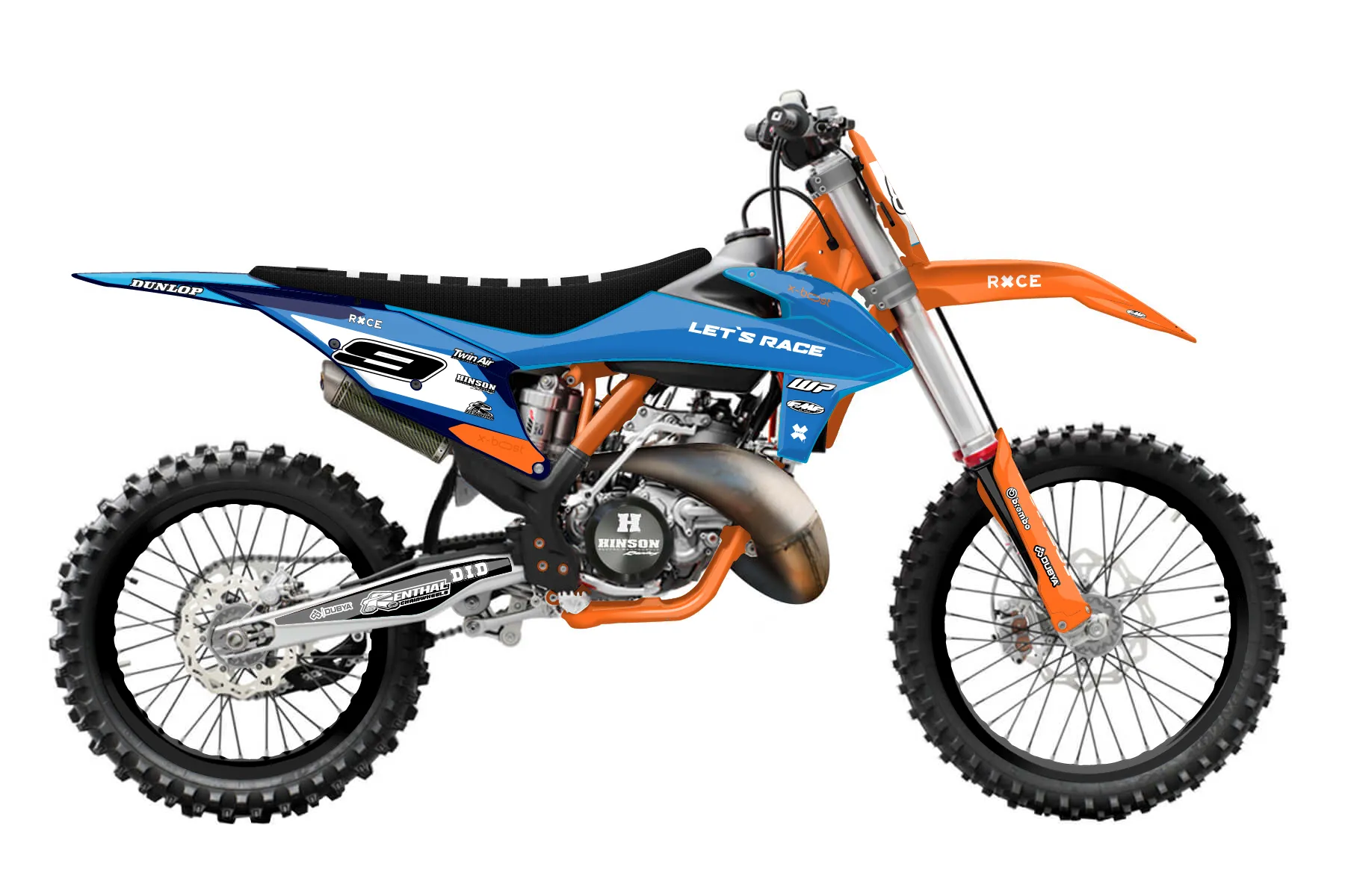 «Meta» — готовый комплект графики серии Flow для KTM MX Graphic Kit KTM SX 125 2019. В комплекте: графика на бак и боковые облицовки, крылья (переднее и заднее), передний щиток, номерные таблички, защита вилки. Материал: ПВХ-винил 80 мкр с холодной ламинацией 300 мкр, общая толщина 380 мкр; покрытие глянцевое или матовое на выбор. Устойчив к UV-излучению, воде, бензину и мойке высокого давления. Клей акриловый на сольвентной основе — постоянный, для гибких пластиков. На простых поверхностях монтируется без нагрева; для сложных изгибов рекомендуем фен. Этот пресет можно заказать как есть или взять за основу в конструкторе: поменять цвета, добавить стартовый номер и свой бренд. Производство — 3–5 рабочих дней, доставка по России СДЭКом или Почтой, по СНГ — курьерскими службами.