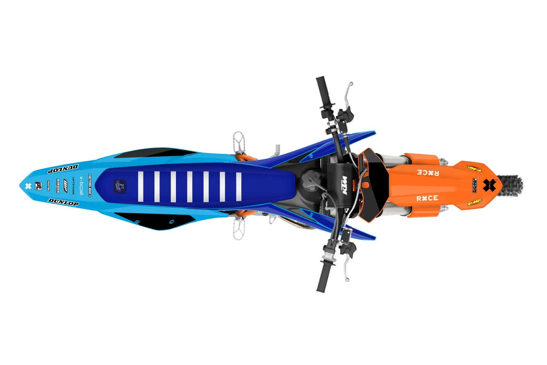 «Signature» — готовый комплект графики серии Flow для KTM MX Graphic Kit KTM SX 125 2019. В комплекте: графика на бак и боковые облицовки, крылья (переднее и заднее), передний щиток, номерные таблички, защита вилки. Материал: ПВХ-винил 80 мкр с холодной ламинацией 300 мкр, общая толщина 380 мкр; покрытие глянцевое или матовое на выбор. Устойчив к UV-излучению, воде, бензину и мойке высокого давления. Клей акриловый на сольвентной основе — постоянный, для гибких пластиков. На простых поверхностях монтируется без нагрева; для сложных изгибов рекомендуем фен. Этот пресет можно заказать как есть или взять за основу в конструкторе: поменять цвета, добавить стартовый номер и свой бренд. Производство — 3–5 рабочих дней, доставка по России СДЭКом или Почтой, по СНГ — курьерскими службами.