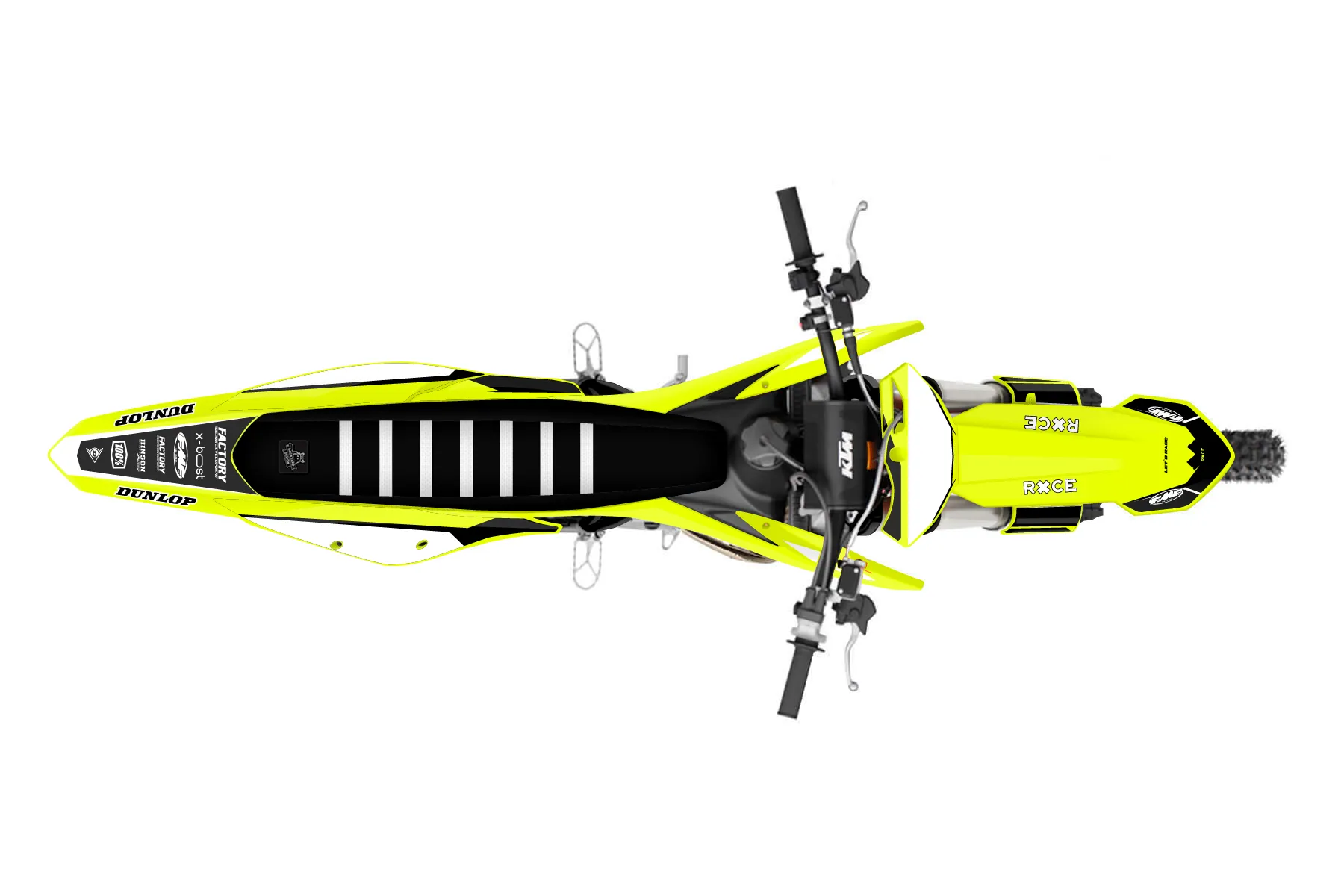 «Bright Neon» — готовый комплект графики серии Maverick для KTM MX Graphic Kit KTM SX 125 2019. В комплекте: графика на бак и боковые облицовки, крылья (переднее и заднее), передний щиток, номерные таблички, защита вилки. Материал: ПВХ-винил 80 мкр с холодной ламинацией 300 мкр, общая толщина 380 мкр; покрытие глянцевое или матовое на выбор. Устойчив к UV-излучению, воде, бензину и мойке высокого давления. Клей акриловый на сольвентной основе — постоянный, для гибких пластиков. На простых поверхностях монтируется без нагрева; для сложных изгибов рекомендуем фен. Этот пресет можно заказать как есть или взять за основу в конструкторе: поменять цвета, добавить стартовый номер и свой бренд. Производство — 3–5 рабочих дней, доставка по России СДЭКом или Почтой, по СНГ — курьерскими службами.