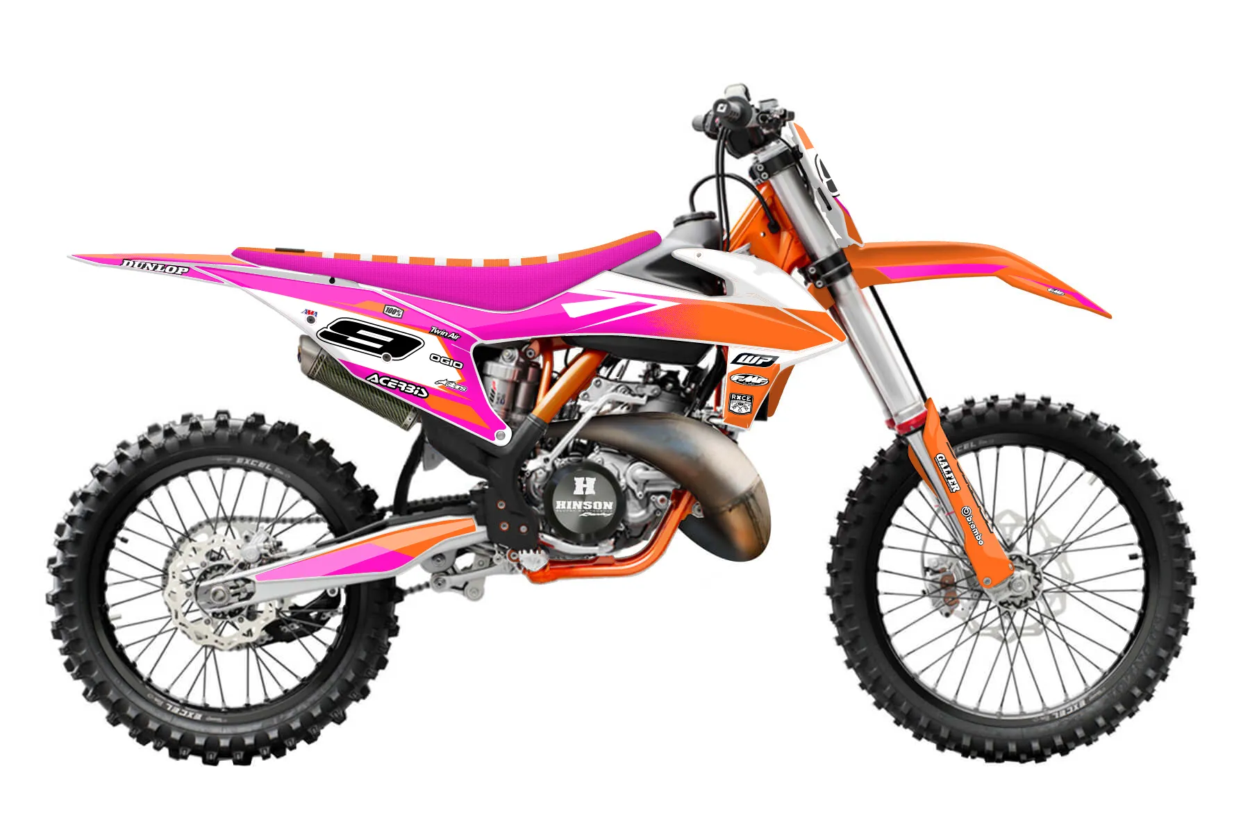 «CustomDesign» — готовый комплект графики серии Maverick для KTM MX Graphic Kit KTM SX 125 2019. В комплекте: графика на бак и боковые облицовки, крылья (переднее и заднее), передний щиток, номерные таблички, защита вилки. Материал: ПВХ-винил 80 мкр с холодной ламинацией 300 мкр, общая толщина 380 мкр; покрытие глянцевое или матовое на выбор. Устойчив к UV-излучению, воде, бензину и мойке высокого давления. Клей акриловый на сольвентной основе — постоянный, для гибких пластиков. На простых поверхностях монтируется без нагрева; для сложных изгибов рекомендуем фен. Этот пресет можно заказать как есть или взять за основу в конструкторе: поменять цвета, добавить стартовый номер и свой бренд. Производство — 3–5 рабочих дней, доставка по России СДЭКом или Почтой, по СНГ — курьерскими службами.