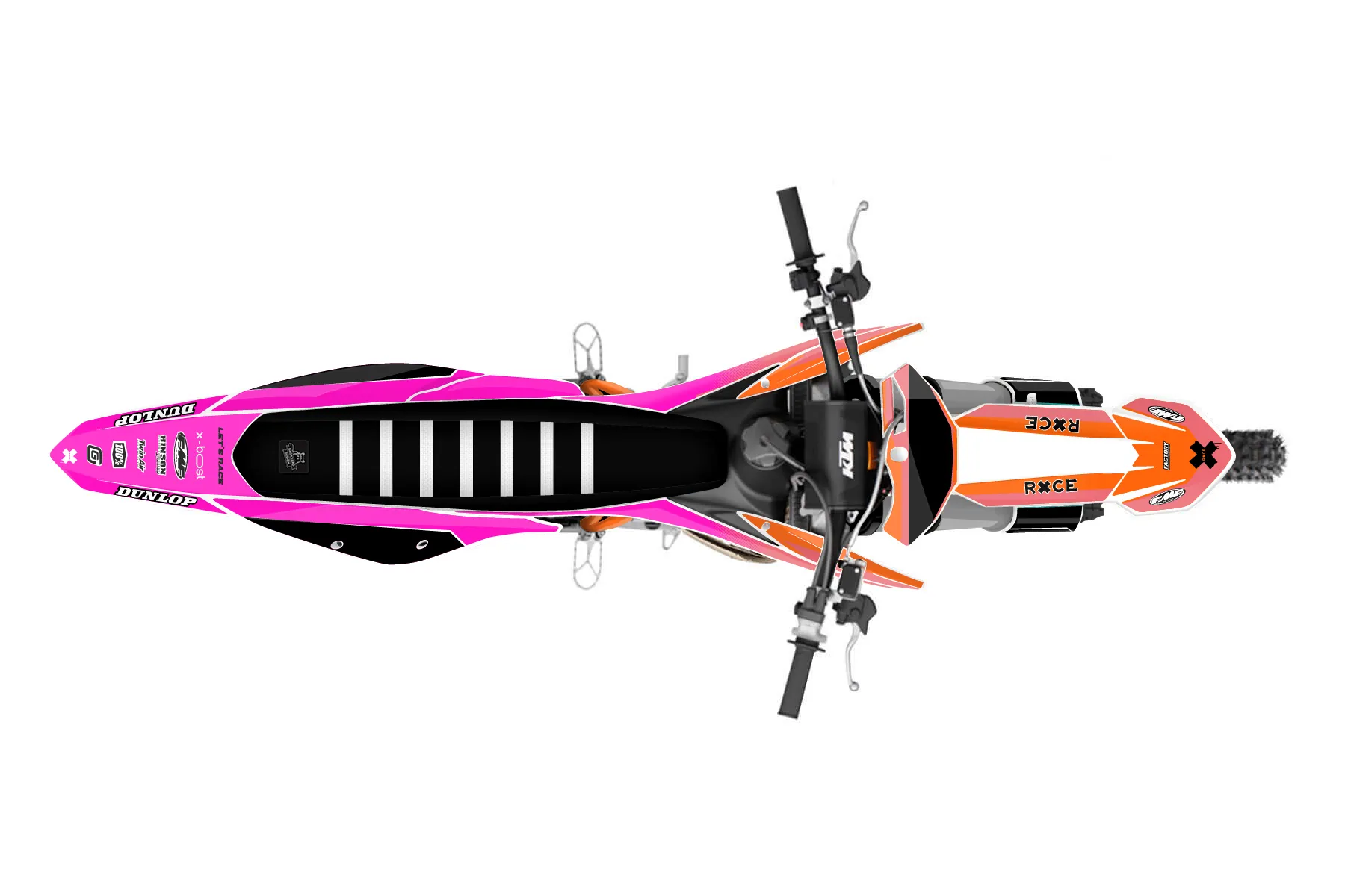 «CustomDesign» — готовый комплект графики серии Maverick для KTM MX Graphic Kit KTM SX 125 2019. В комплекте: графика на бак и боковые облицовки, крылья (переднее и заднее), передний щиток, номерные таблички, защита вилки. Материал: ПВХ-винил 80 мкр с холодной ламинацией 300 мкр, общая толщина 380 мкр; покрытие глянцевое или матовое на выбор. Устойчив к UV-излучению, воде, бензину и мойке высокого давления. Клей акриловый на сольвентной основе — постоянный, для гибких пластиков. На простых поверхностях монтируется без нагрева; для сложных изгибов рекомендуем фен. Этот пресет можно заказать как есть или взять за основу в конструкторе: поменять цвета, добавить стартовый номер и свой бренд. Производство — 3–5 рабочих дней, доставка по России СДЭКом или Почтой, по СНГ — курьерскими службами.