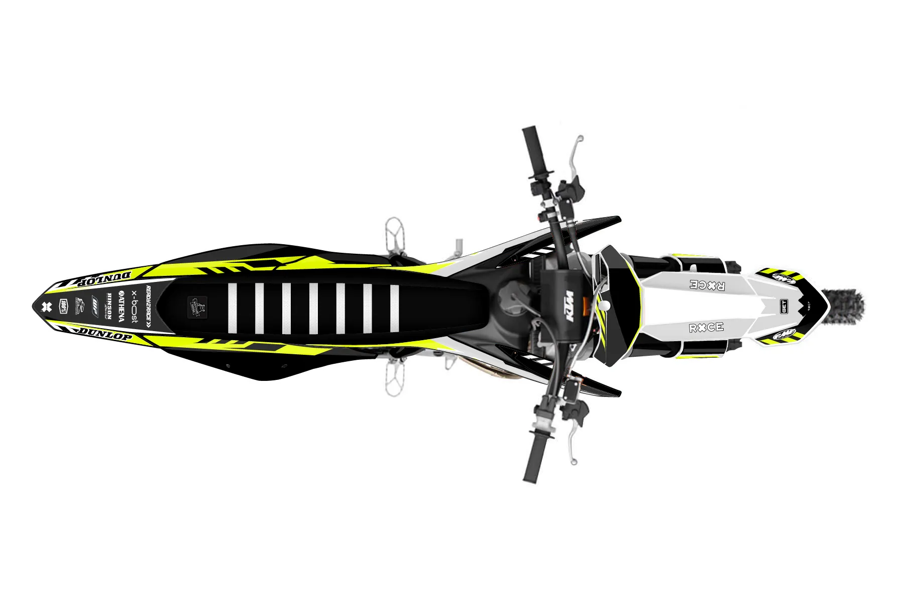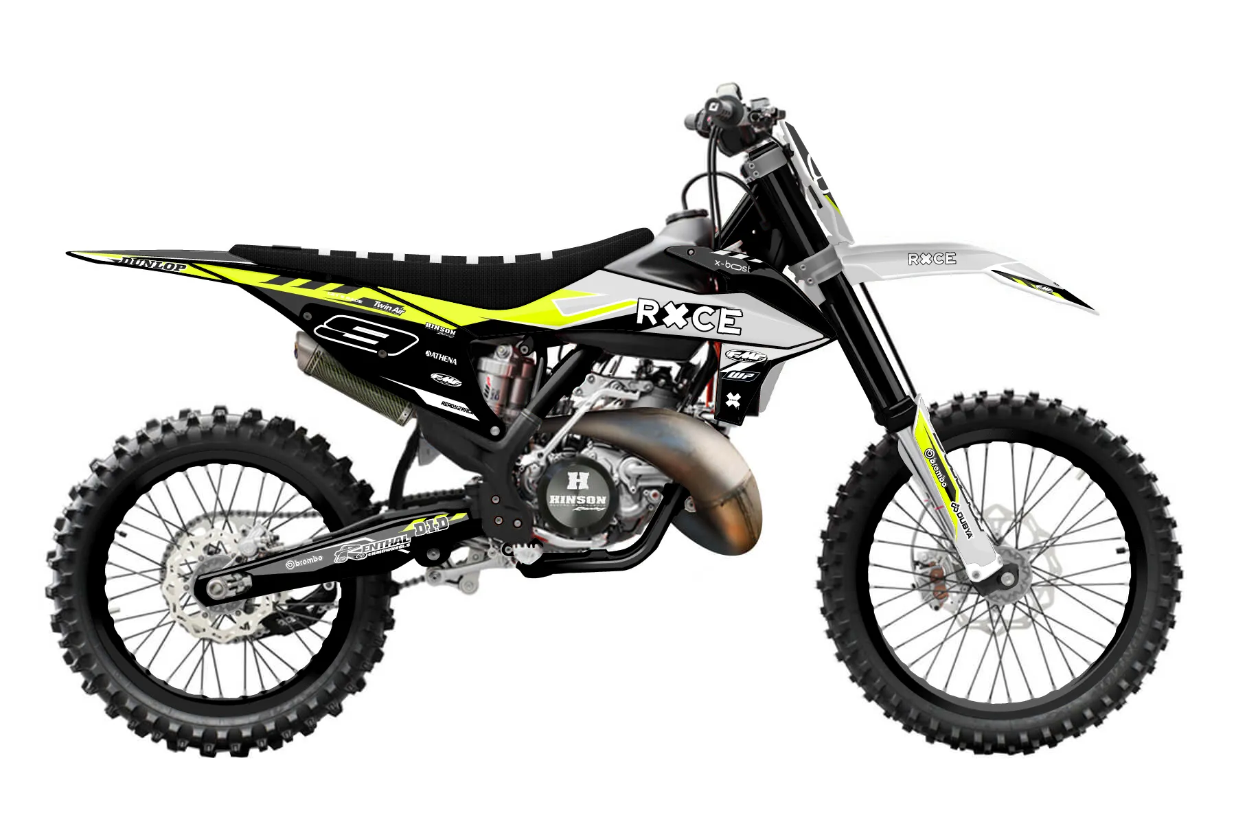 «Daze Fluo» — готовый комплект графики серии Maverick для KTM MX Graphic Kit KTM SX 125 2019. В комплекте: графика на бак и боковые облицовки, крылья (переднее и заднее), передний щиток, номерные таблички, защита вилки. Материал: ПВХ-винил 80 мкр с холодной ламинацией 300 мкр, общая толщина 380 мкр; покрытие глянцевое или матовое на выбор. Устойчив к UV-излучению, воде, бензину и мойке высокого давления. Клей акриловый на сольвентной основе — постоянный, для гибких пластиков. На простых поверхностях монтируется без нагрева; для сложных изгибов рекомендуем фен. Этот пресет можно заказать как есть или взять за основу в конструкторе: поменять цвета, добавить стартовый номер и свой бренд. Производство — 3–5 рабочих дней, доставка по России СДЭКом или Почтой, по СНГ — курьерскими службами.