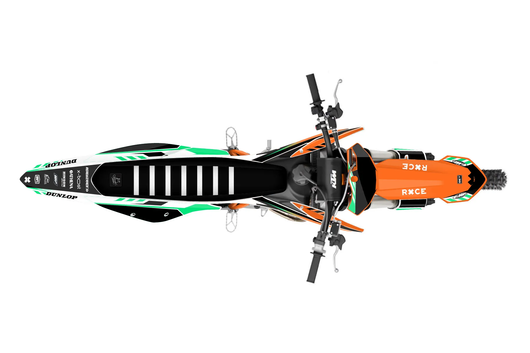 «Future» — готовый комплект графики серии Maverick для KTM MX Graphic Kit KTM SX 125 2019. В комплекте: графика на бак и боковые облицовки, крылья (переднее и заднее), передний щиток, номерные таблички, защита вилки. Материал: ПВХ-винил 80 мкр с холодной ламинацией 300 мкр, общая толщина 380 мкр; покрытие глянцевое или матовое на выбор. Устойчив к UV-излучению, воде, бензину и мойке высокого давления. Клей акриловый на сольвентной основе — постоянный, для гибких пластиков. На простых поверхностях монтируется без нагрева; для сложных изгибов рекомендуем фен. Этот пресет можно заказать как есть или взять за основу в конструкторе: поменять цвета, добавить стартовый номер и свой бренд. Производство — 3–5 рабочих дней, доставка по России СДЭКом или Почтой, по СНГ — курьерскими службами.