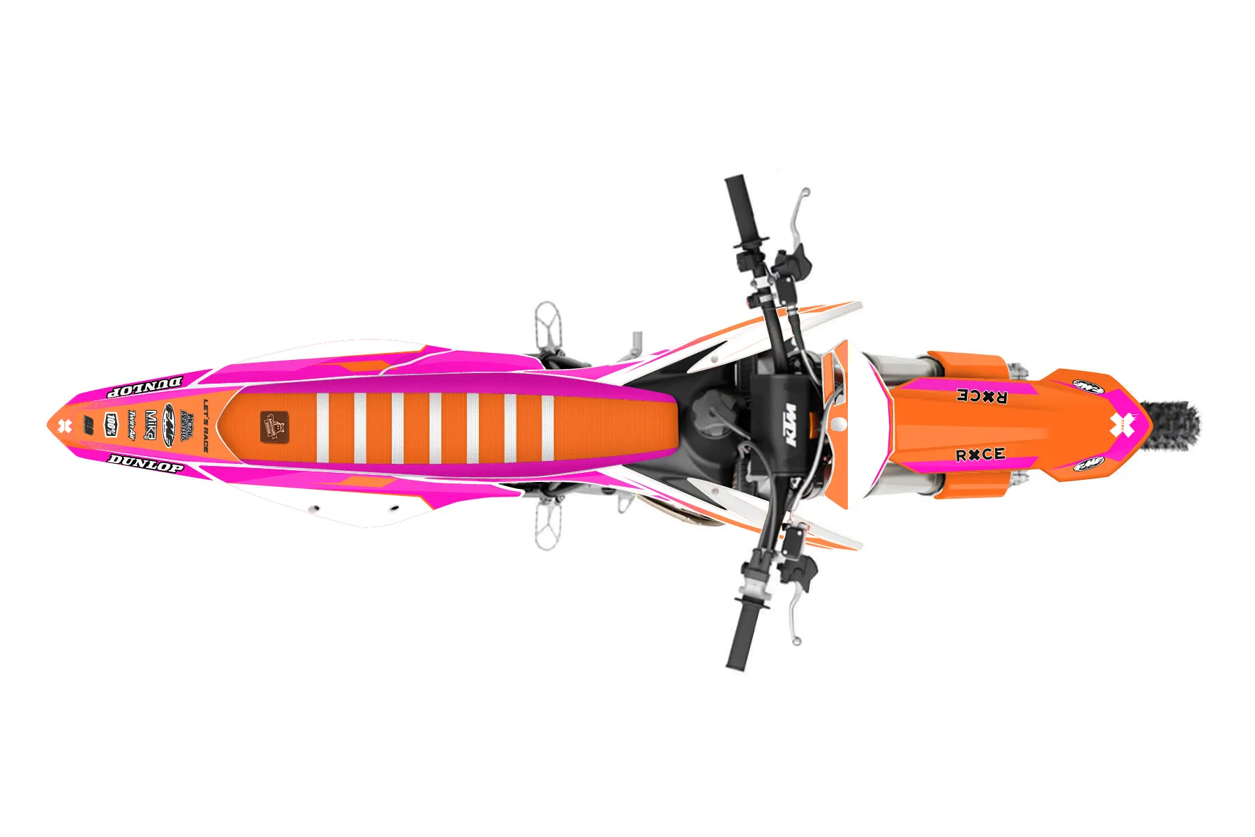 «new me» — готовый комплект графики серии Maverick для KTM MX Graphic Kit KTM SX 125 2019. В комплекте: графика на бак и боковые облицовки, крылья (переднее и заднее), передний щиток, номерные таблички, защита вилки. Материал: ПВХ-винил 80 мкр с холодной ламинацией 300 мкр, общая толщина 380 мкр; покрытие глянцевое или матовое на выбор. Устойчив к UV-излучению, воде, бензину и мойке высокого давления. Клей акриловый на сольвентной основе — постоянный, для гибких пластиков. На простых поверхностях монтируется без нагрева; для сложных изгибов рекомендуем фен. Этот пресет можно заказать как есть или взять за основу в конструкторе: поменять цвета, добавить стартовый номер и свой бренд. Производство — 3–5 рабочих дней, доставка по России СДЭКом или Почтой, по СНГ — курьерскими службами.