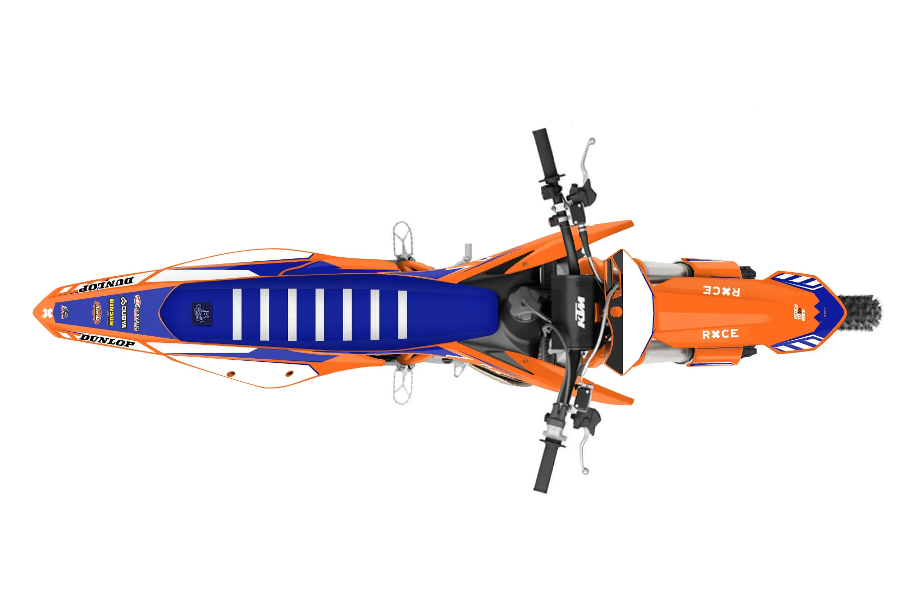 «Showtime» — готовый комплект графики серии Maverick для KTM MX Graphic Kit KTM SX 125 2019. В комплекте: графика на бак и боковые облицовки, крылья (переднее и заднее), передний щиток, номерные таблички, защита вилки. Материал: ПВХ-винил 80 мкр с холодной ламинацией 300 мкр, общая толщина 380 мкр; покрытие глянцевое или матовое на выбор. Устойчив к UV-излучению, воде, бензину и мойке высокого давления. Клей акриловый на сольвентной основе — постоянный, для гибких пластиков. На простых поверхностях монтируется без нагрева; для сложных изгибов рекомендуем фен. Этот пресет можно заказать как есть или взять за основу в конструкторе: поменять цвета, добавить стартовый номер и свой бренд. Производство — 3–5 рабочих дней, доставка по России СДЭКом или Почтой, по СНГ — курьерскими службами.