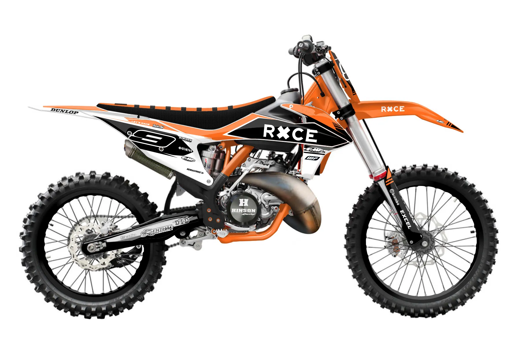 «Crowning» — готовый комплект графики серии Untucked для KTM MX Graphic Kit KTM SX 125 2019. В комплекте: графика на бак и боковые облицовки, крылья (переднее и заднее), передний щиток, номерные таблички, защита вилки. Материал: ПВХ-винил 80 мкр с холодной ламинацией 300 мкр, общая толщина 380 мкр; покрытие глянцевое или матовое на выбор. Устойчив к UV-излучению, воде, бензину и мойке высокого давления. Клей акриловый на сольвентной основе — постоянный, для гибких пластиков. На простых поверхностях монтируется без нагрева; для сложных изгибов рекомендуем фен. Этот пресет можно заказать как есть или взять за основу в конструкторе: поменять цвета, добавить стартовый номер и свой бренд. Производство — 3–5 рабочих дней, доставка по России СДЭКом или Почтой, по СНГ — курьерскими службами.