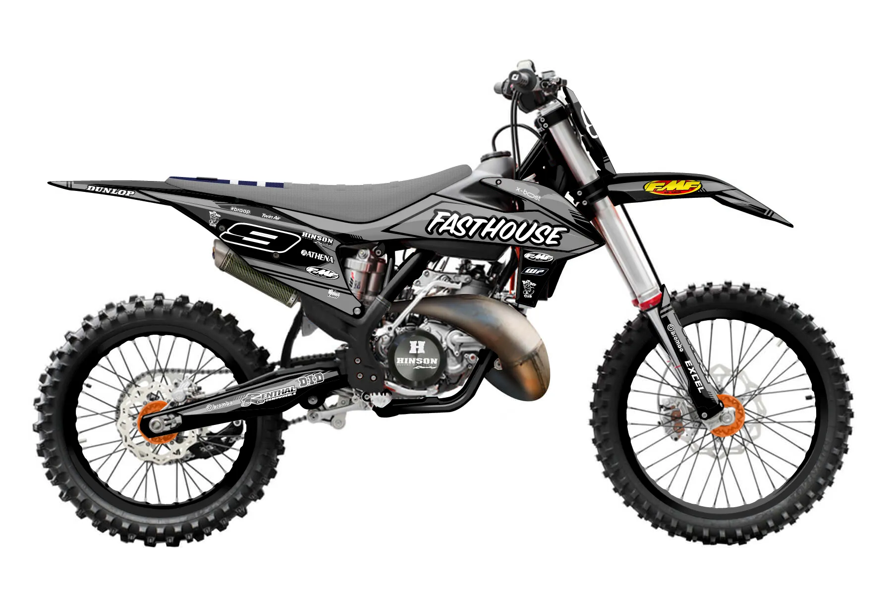 «heem 125» — готовый комплект графики серии Untucked для KTM MX Graphic Kit KTM SX 125 2019. В комплекте: графика на бак и боковые облицовки, крылья (переднее и заднее), передний щиток, номерные таблички, защита вилки. Материал: ПВХ-винил 80 мкр с холодной ламинацией 300 мкр, общая толщина 380 мкр; покрытие глянцевое или матовое на выбор. Устойчив к UV-излучению, воде, бензину и мойке высокого давления. Клей акриловый на сольвентной основе — постоянный, для гибких пластиков. На простых поверхностях монтируется без нагрева; для сложных изгибов рекомендуем фен. Этот пресет можно заказать как есть или взять за основу в конструкторе: поменять цвета, добавить стартовый номер и свой бренд. Производство — 3–5 рабочих дней, доставка по России СДЭКом или Почтой, по СНГ — курьерскими службами.