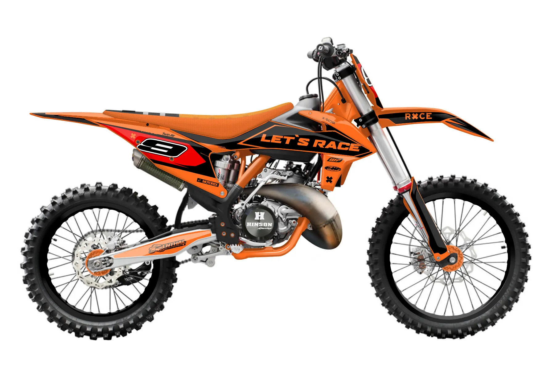 «Ktm 125 sx» — готовый комплект графики серии Untucked для KTM MX Graphic Kit KTM SX 125 2019. В комплекте: графика на бак и боковые облицовки, крылья (переднее и заднее), передний щиток, номерные таблички, защита вилки. Материал: ПВХ-винил 80 мкр с холодной ламинацией 300 мкр, общая толщина 380 мкр; покрытие глянцевое или матовое на выбор. Устойчив к UV-излучению, воде, бензину и мойке высокого давления. Клей акриловый на сольвентной основе — постоянный, для гибких пластиков. На простых поверхностях монтируется без нагрева; для сложных изгибов рекомендуем фен. Этот пресет можно заказать как есть или взять за основу в конструкторе: поменять цвета, добавить стартовый номер и свой бренд. Производство — 3–5 рабочих дней, доставка по России СДЭКом или Почтой, по СНГ — курьерскими службами.